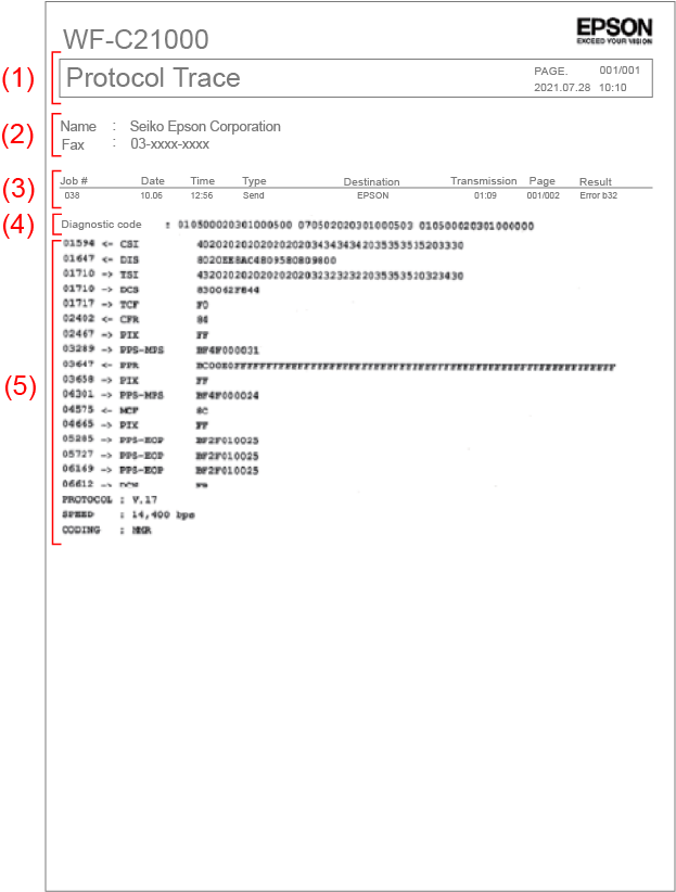 | PIX | FF [33,600 bps (V.34) / MMR / A4 / 8x7.7 / 0(E:0)] | 接收到对于图像信号第1页的帧重新传输请求。通信状态在[ ]中描述。 |