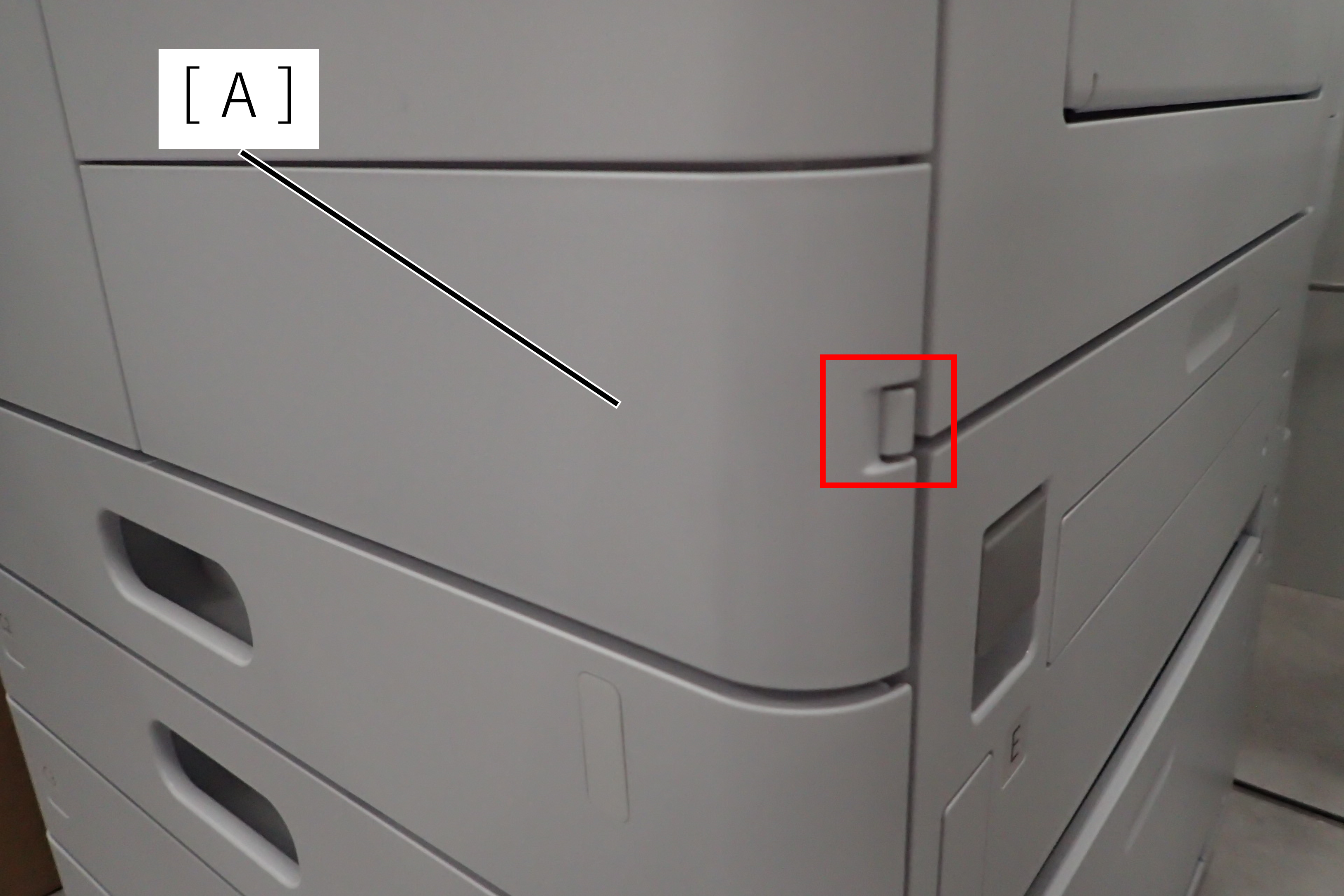 - 打开前盖(A)。