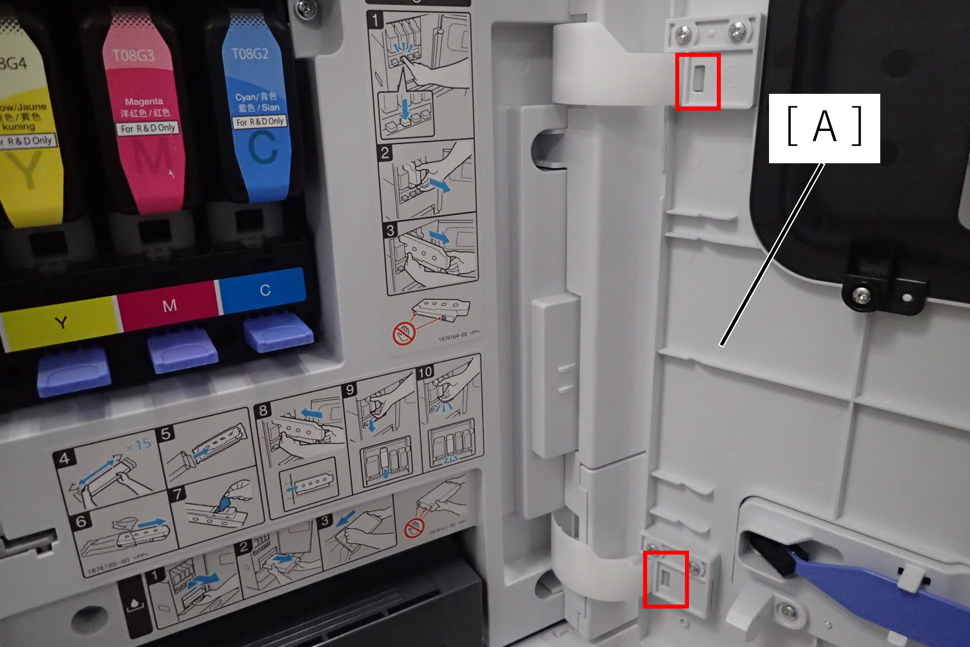 - 按照无法拆下的运输部件,改变打印头单元或泵附件单元的位置。