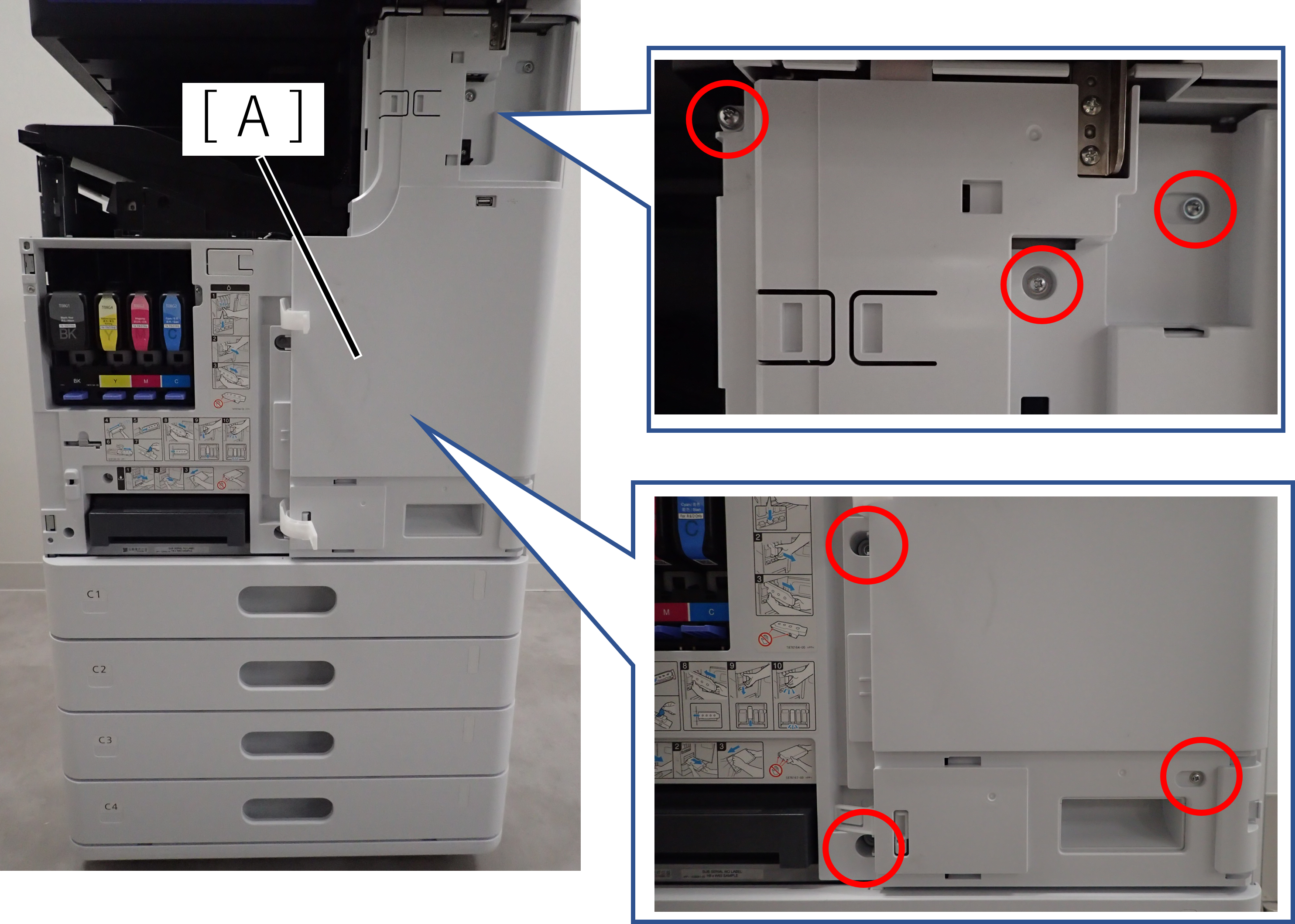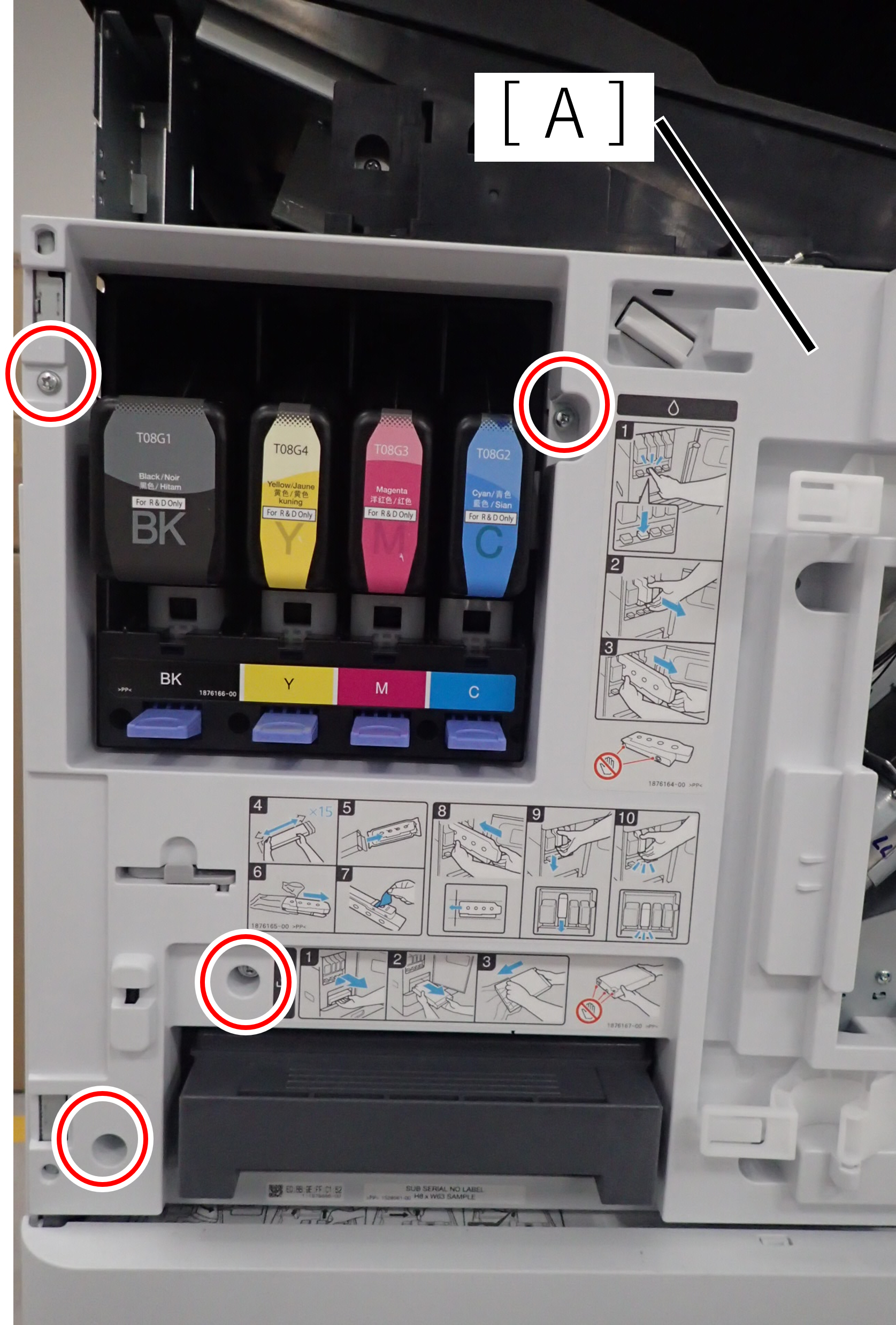 - 拆下4颗螺丝,然后拆下副右盖(A)。(S7: