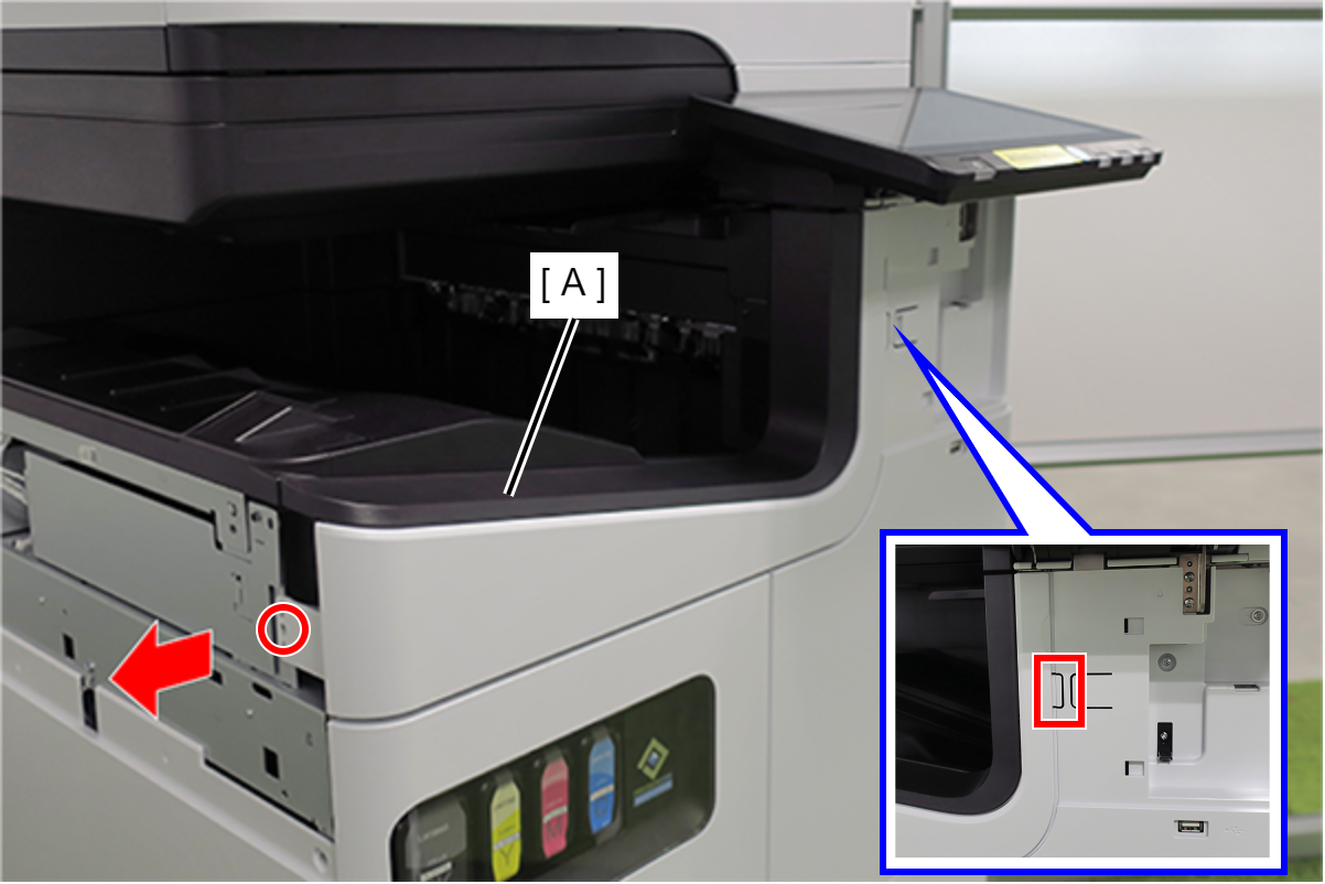- 推前盖(A)上的卡钩,拆下前盖(A)。