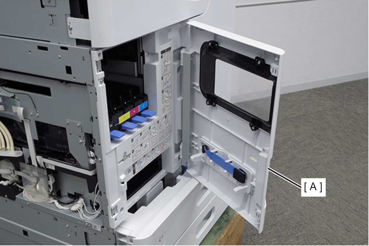 - 从主机拆下前下外罩(A)。