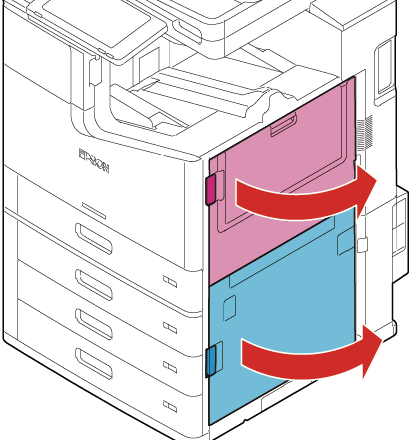 拉动杆并打开多用途纸盒进纸盖组件。