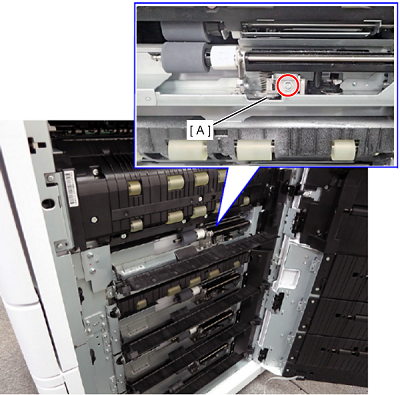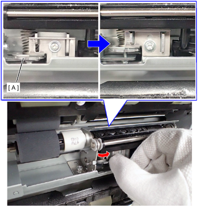 如果出现不进纸,沿箭头方向(逆时针)旋转弹簧压力调整刻度盘(A),以抬起刻度盘位置。
