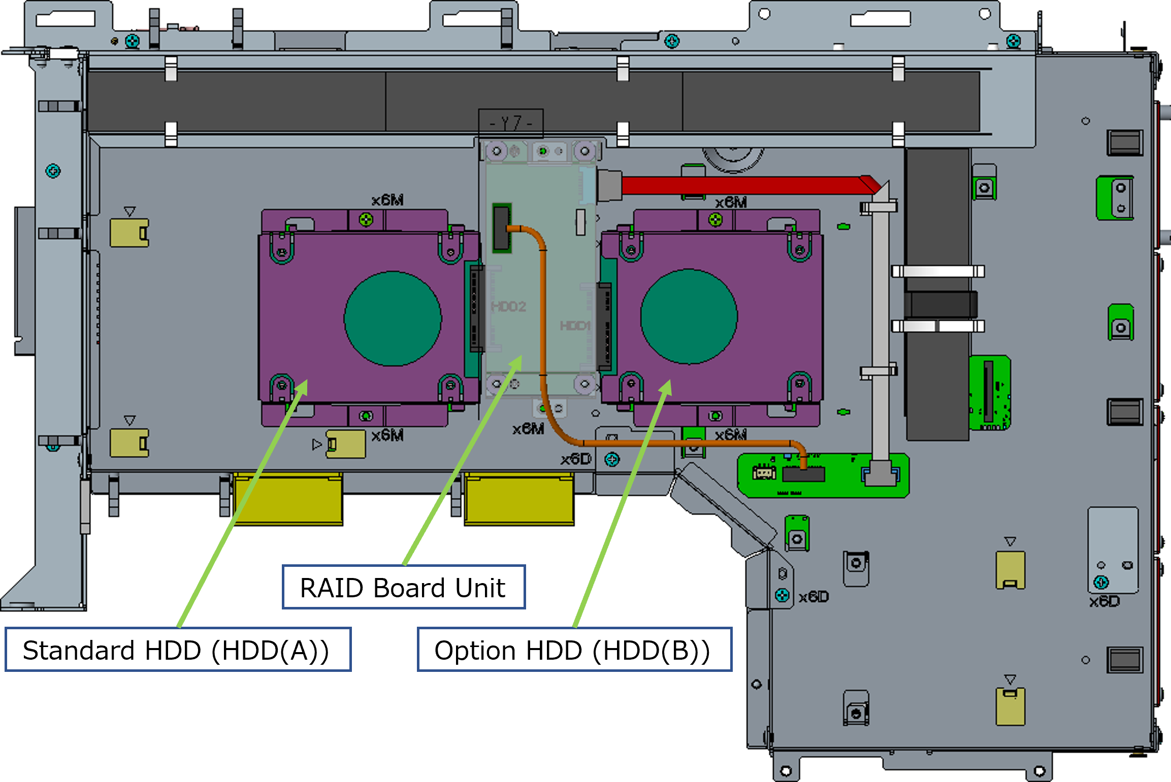 ・标准HDD单元(HDD(A)):打印机标准配置中安装的HDD