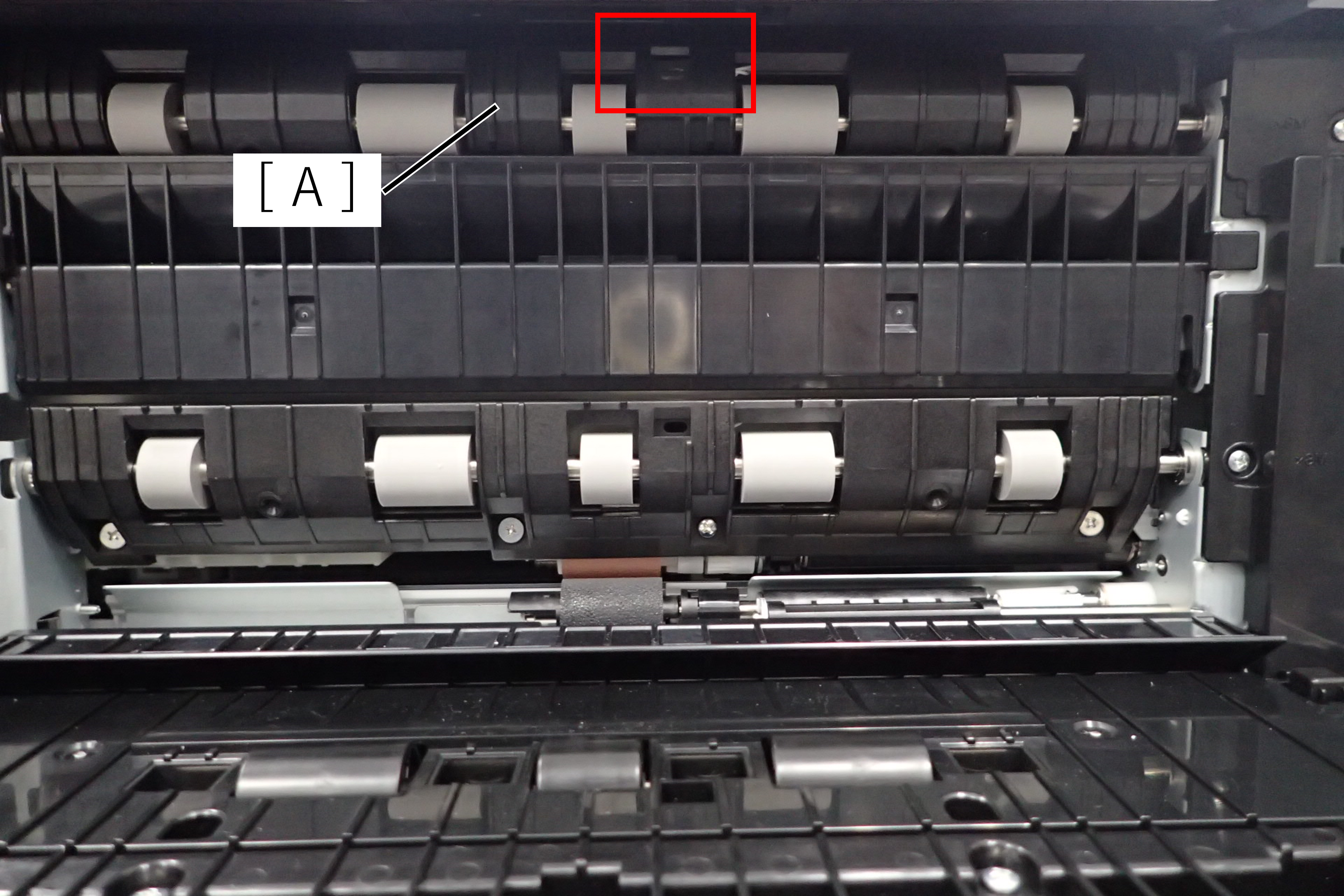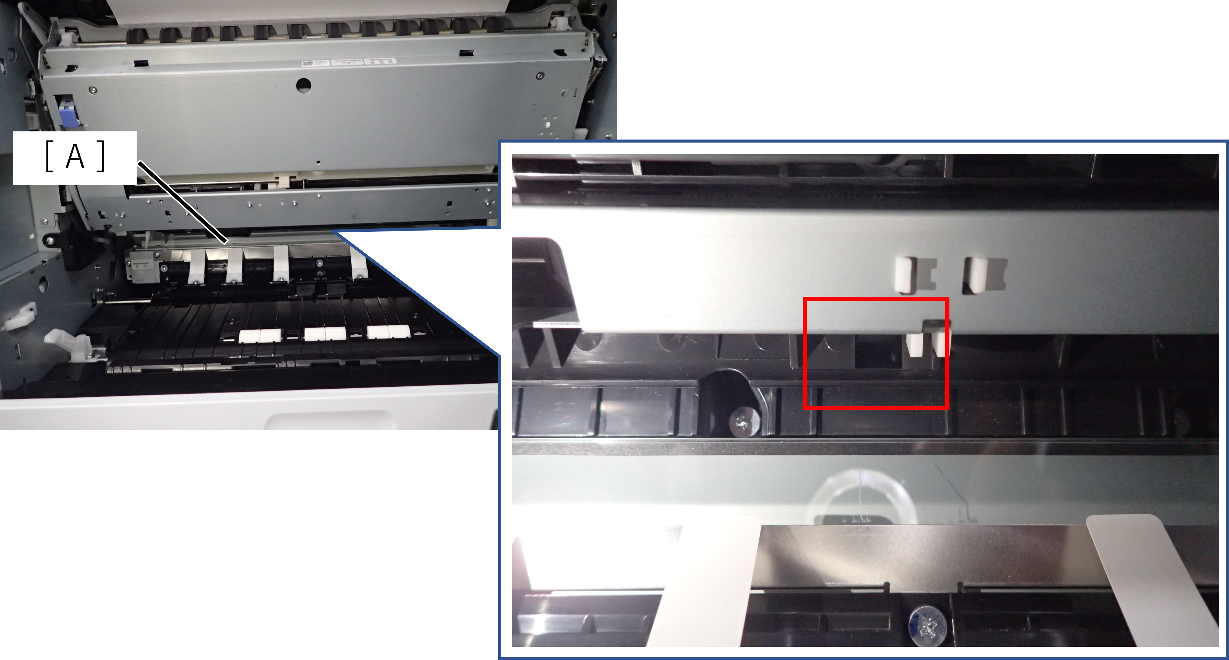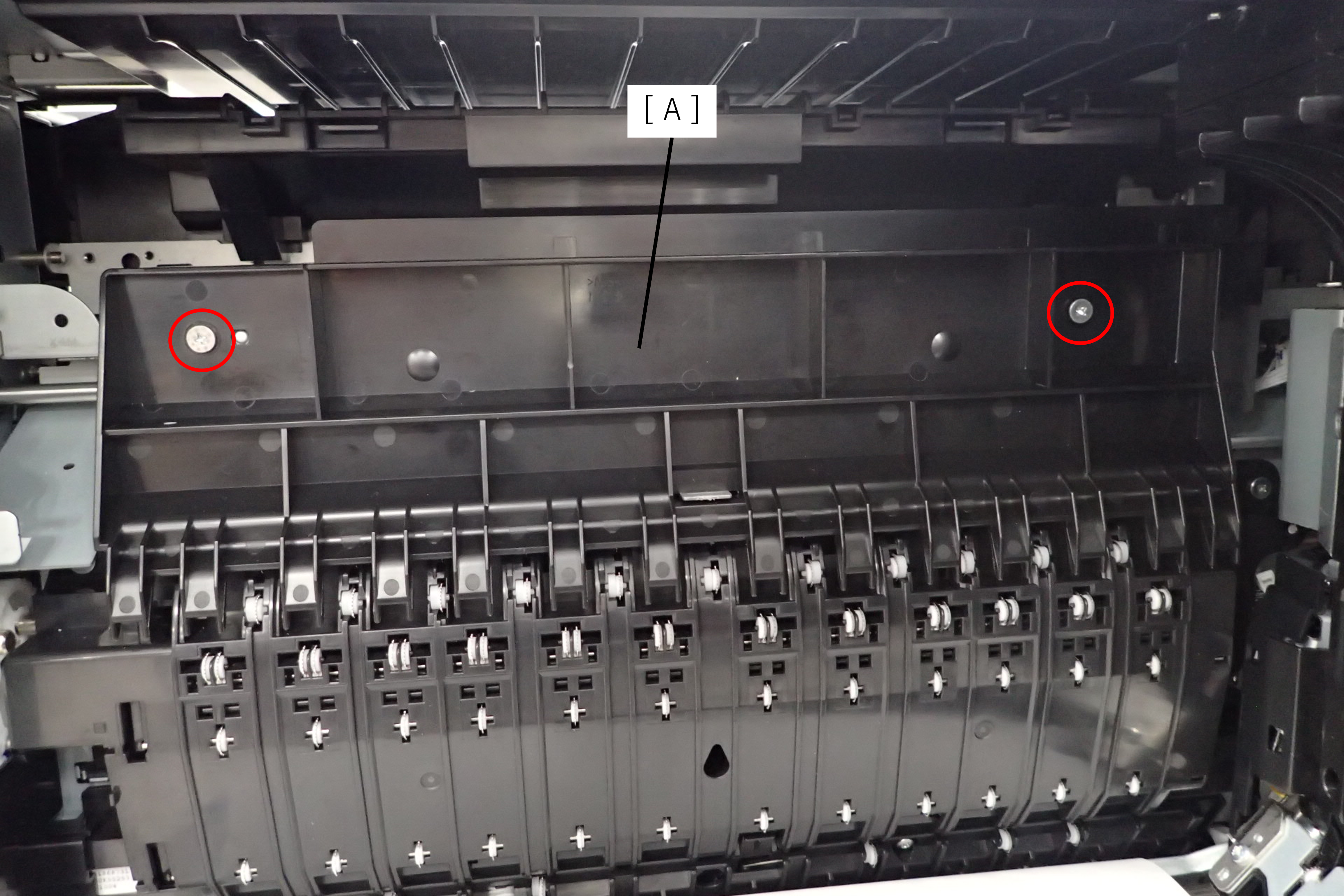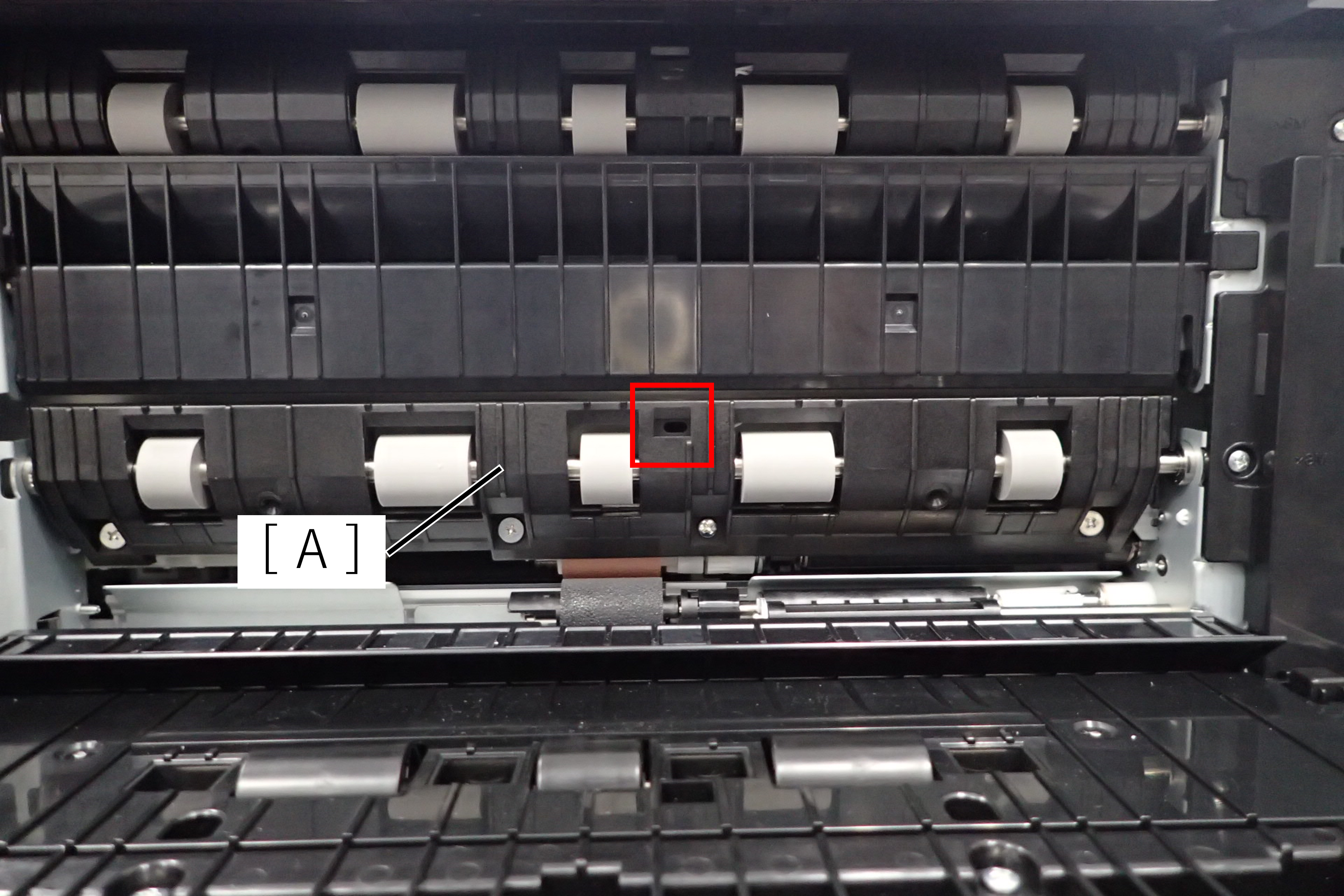 - 拆下2颗螺丝并拆下导纸轨(A)。