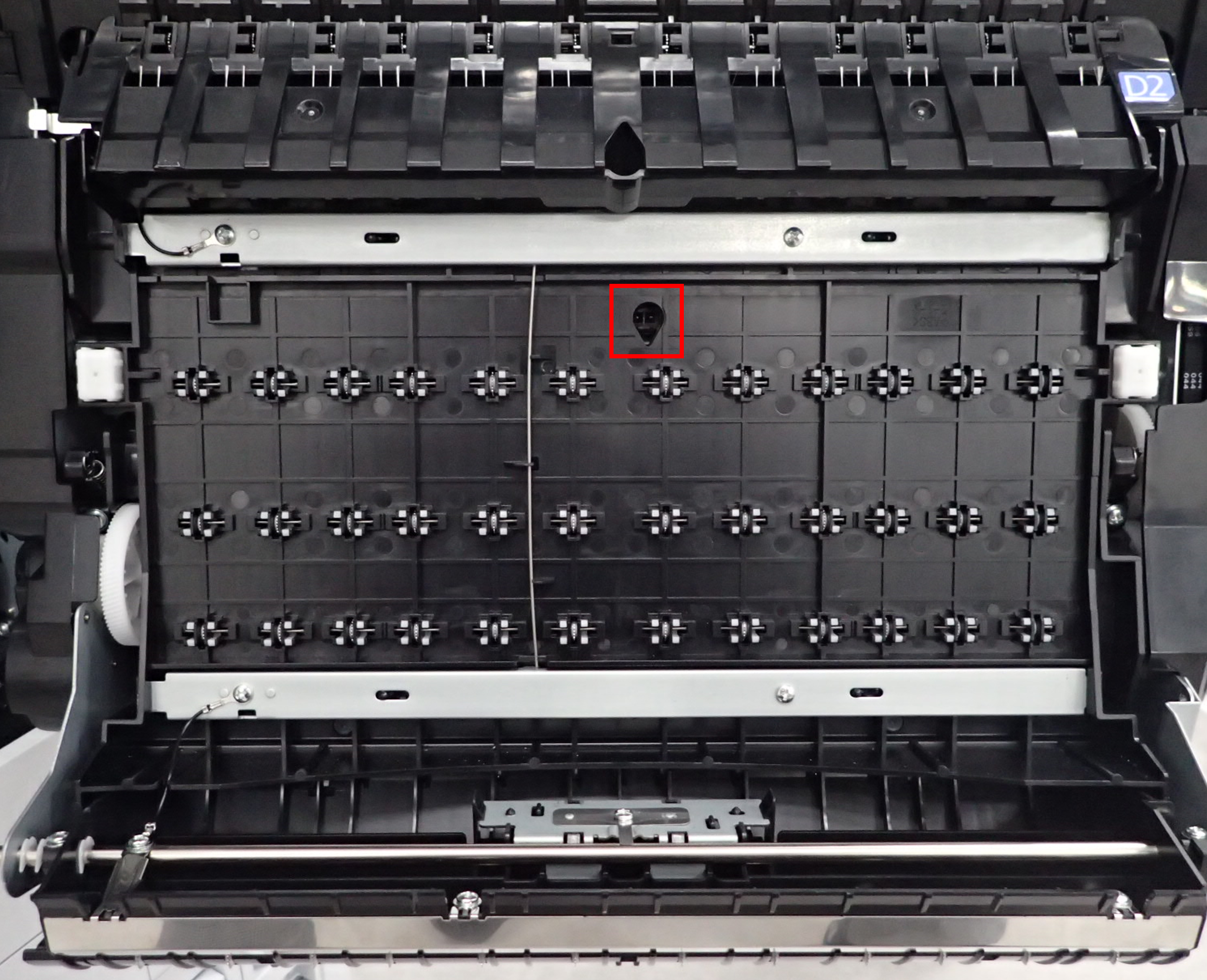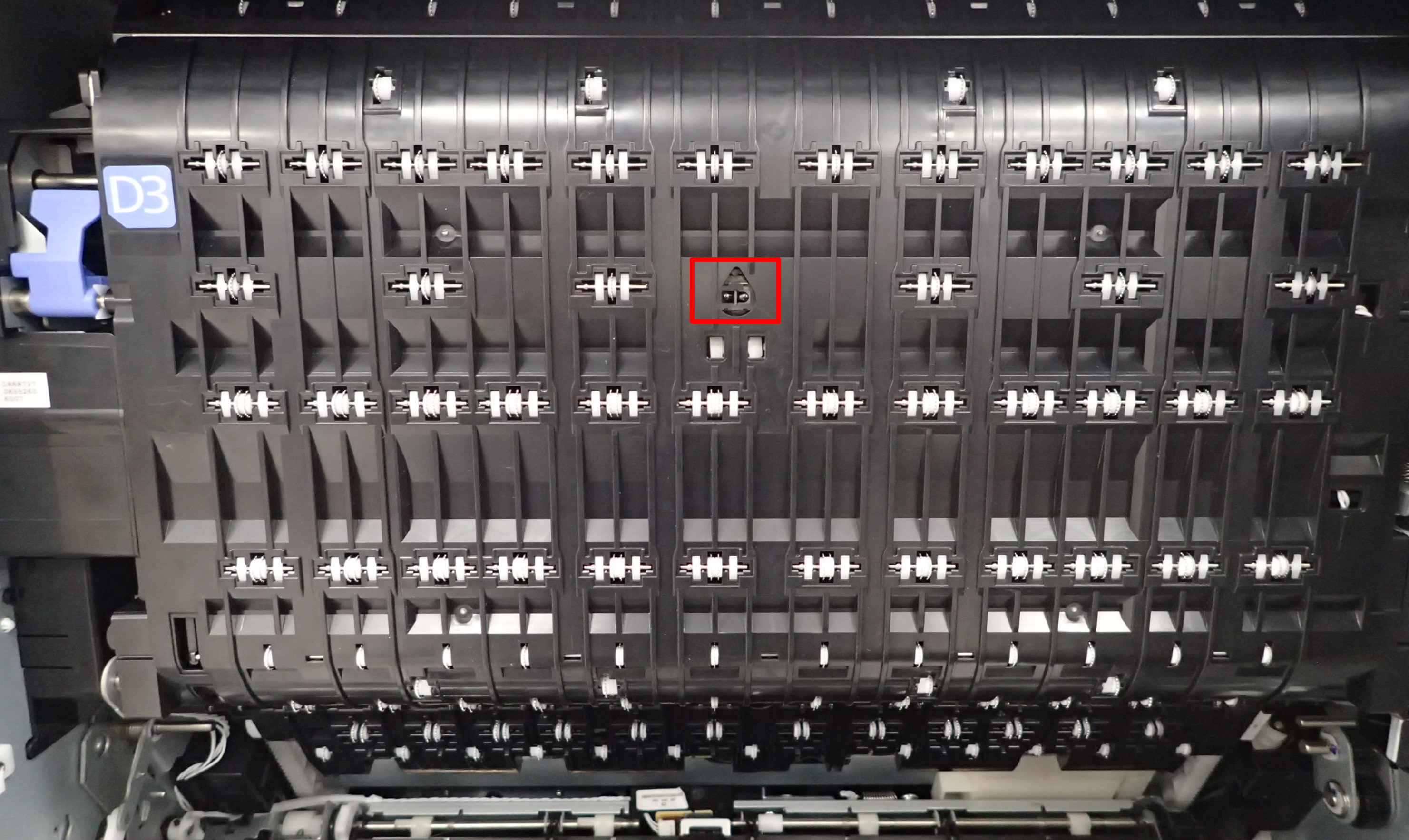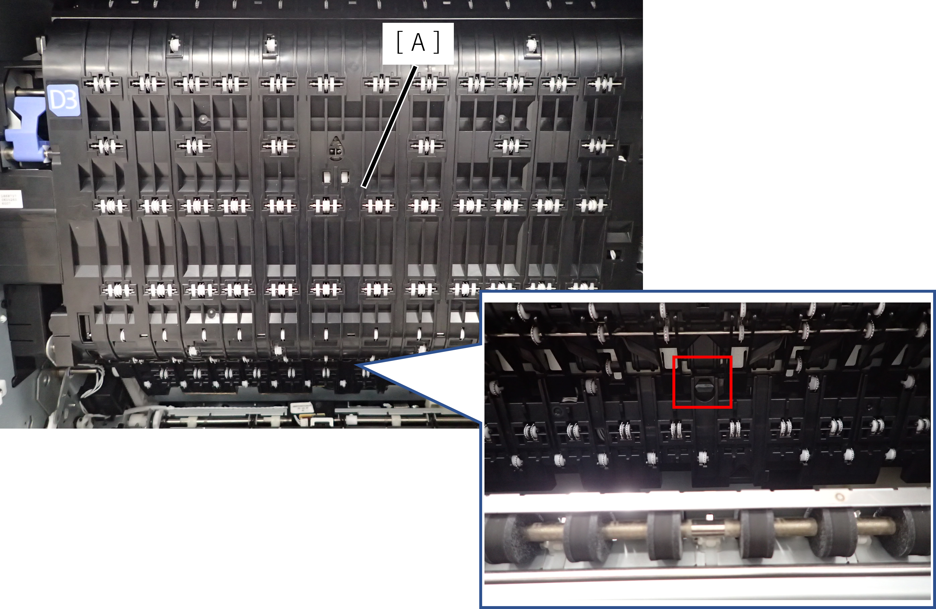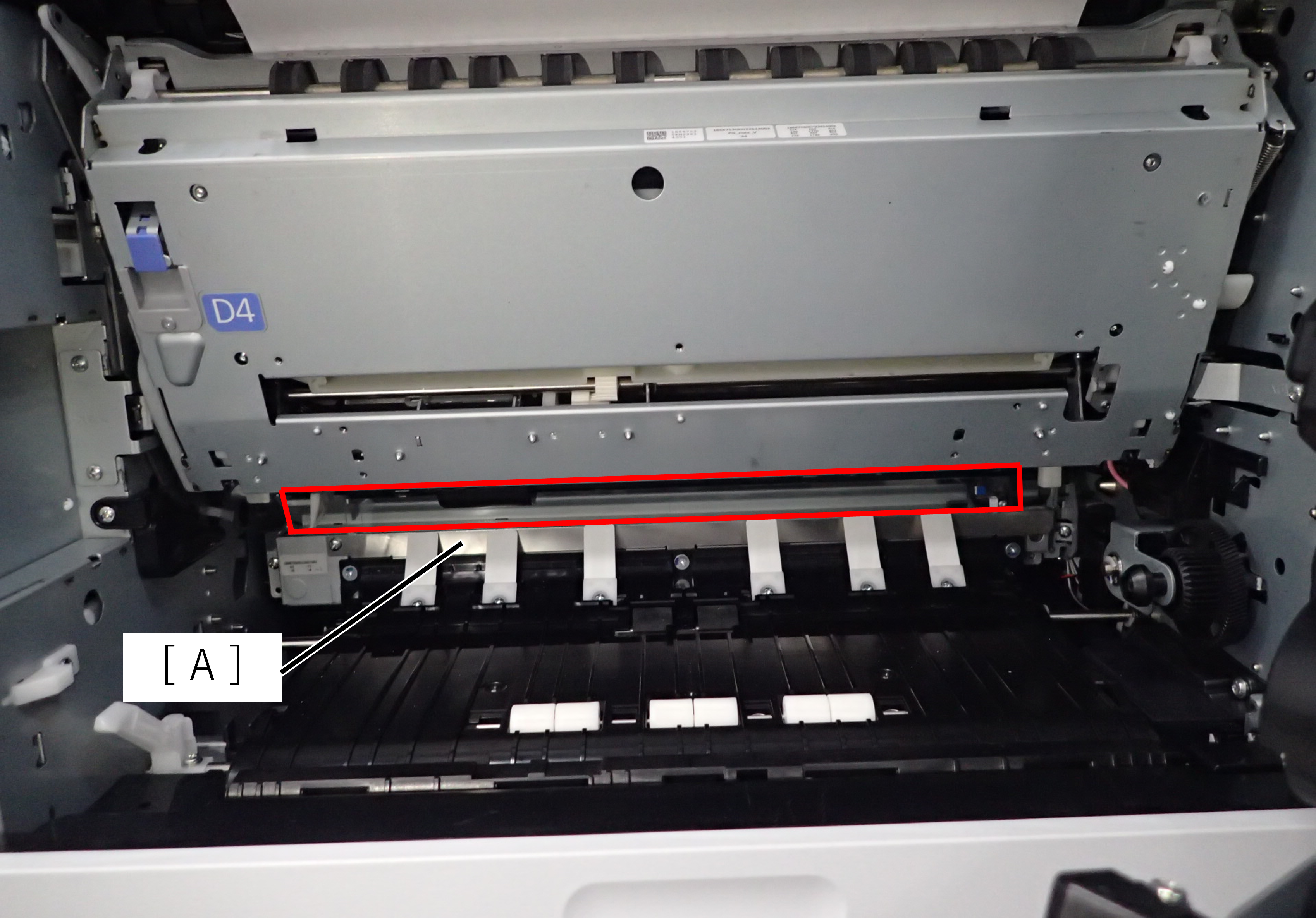 - 拆下2颗螺丝并拆下导纸轨(A)。