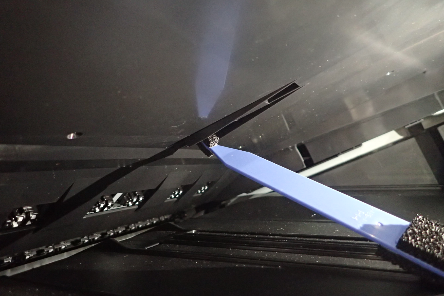 用清洁棒顶部和底部的海绵轻轻擦拭传感器玻璃表面。如果清洁棒上的海绵变脏,请使用蘸有纯净水的干净布清洁海绵表面。