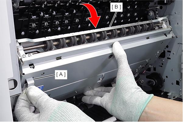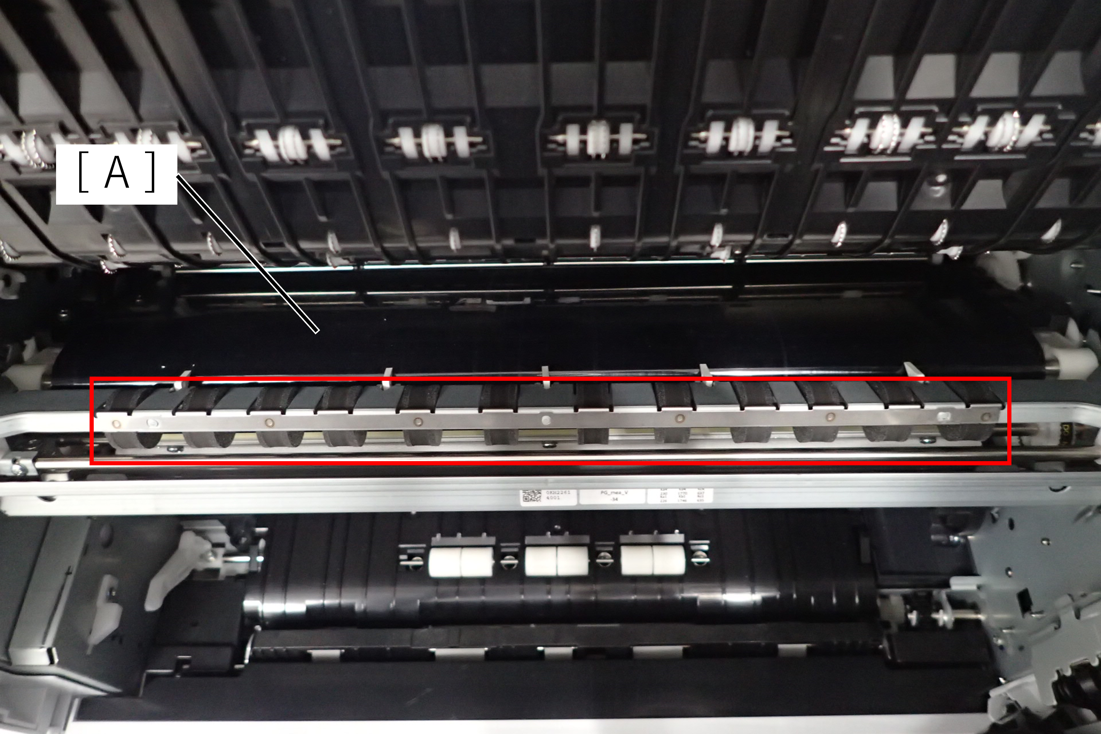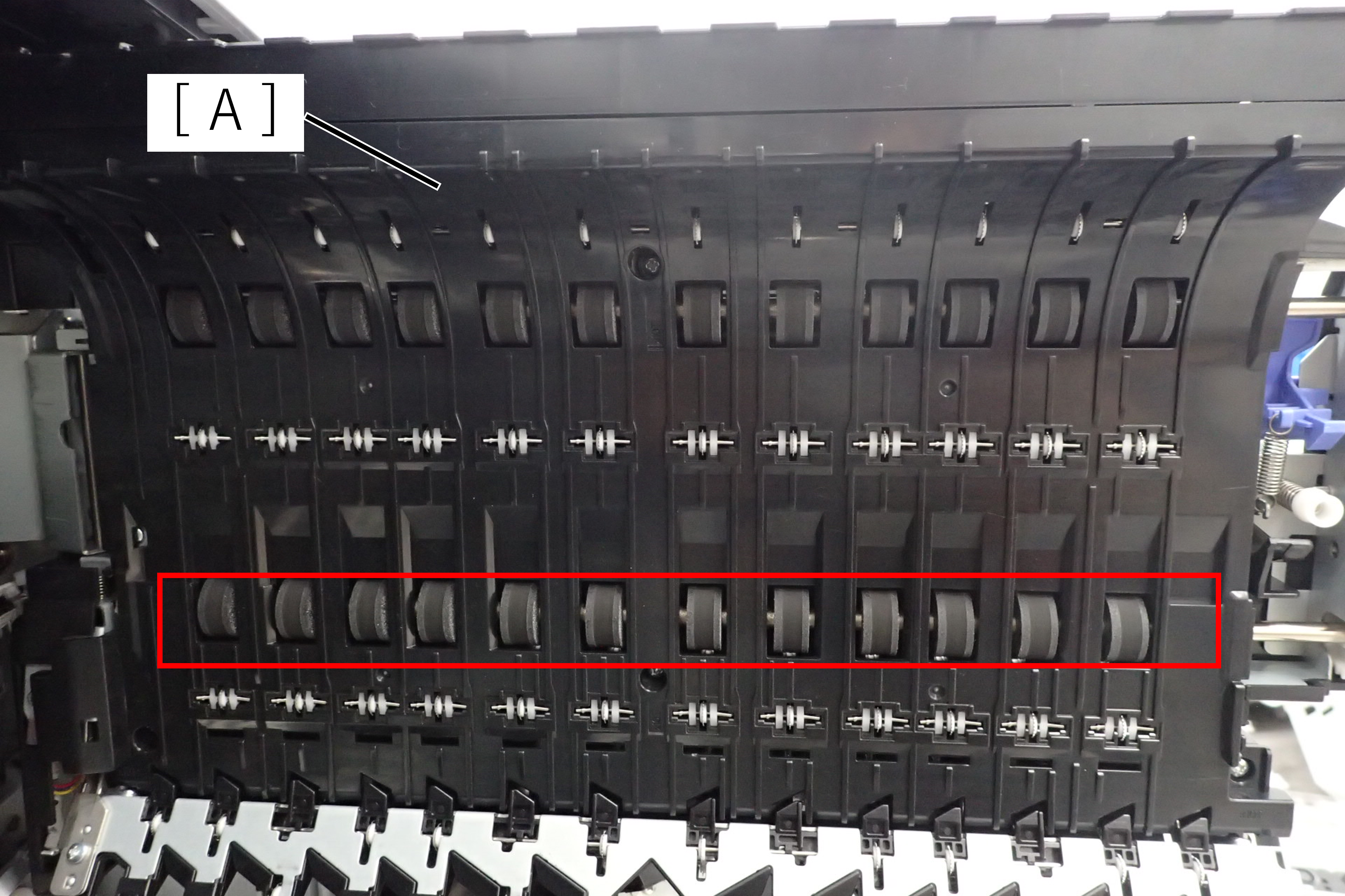 - 这是出纸路径(A)顶部的齿形辊。