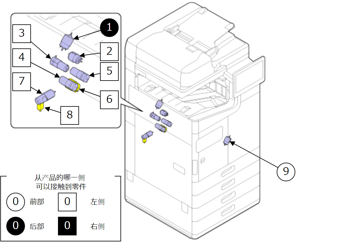 | 4 | 第1出纸托盘风扇1 | 用于减少弹出纸张的卷曲,以便整齐堆叠。 | |