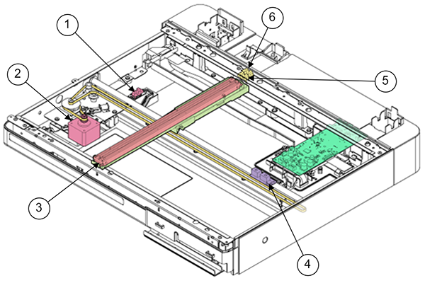 纸张分离采用阻滞分离法进行,每个文档都通过ADF阻抗辊进行分离。为了支持最大尺寸为A3/Ledger的文档送纸功能,文档托架中安装了四个传感器(文档宽度传感器,ADF(x2)/文档长度传感器,ADF(x2))用于文档尺寸检测。