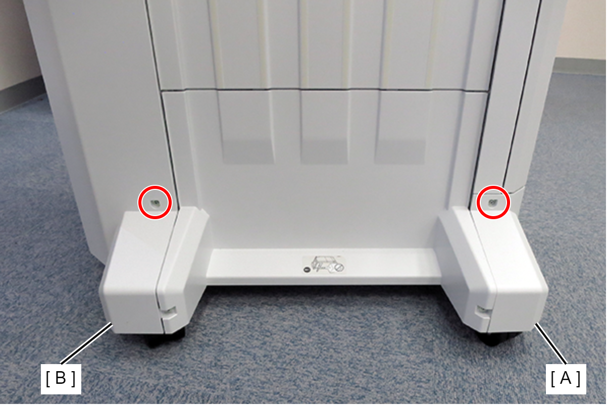 - 拆下固定前脚轮盖(A)和后脚轮盖(B)的螺丝。