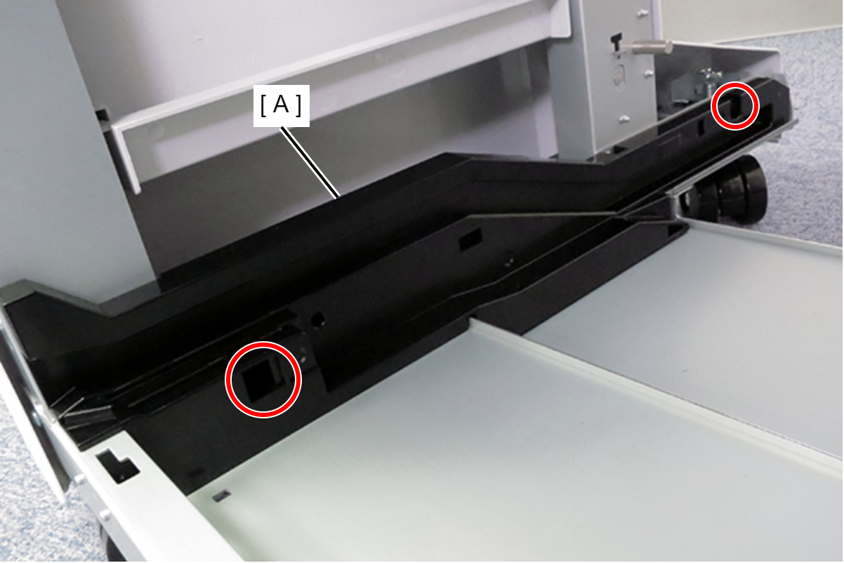 - 安装2块托盘止动板(A)并各用1颗螺丝固定。