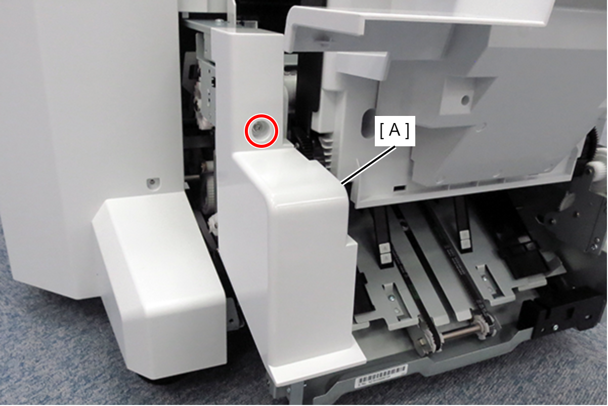 - 关闭前盖(A)的下部,用1颗螺丝固定,然后关闭前盖(B)。
