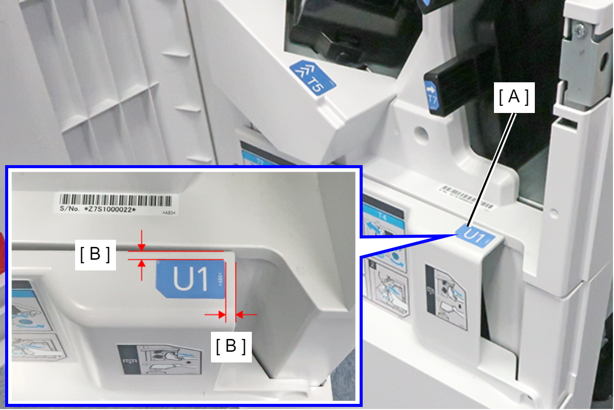 将U1标签(A)贴在所示位置。(B:4 mm)