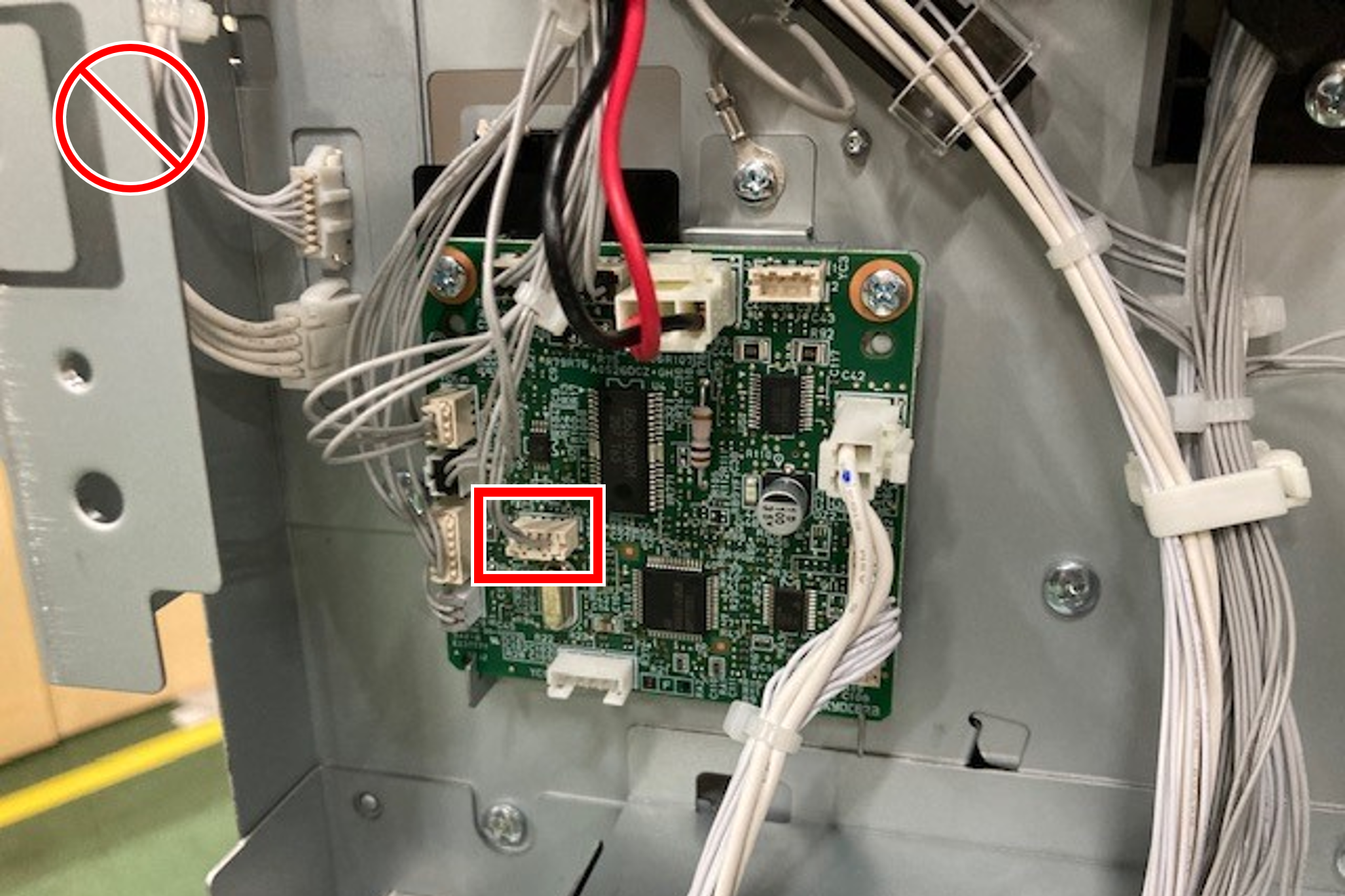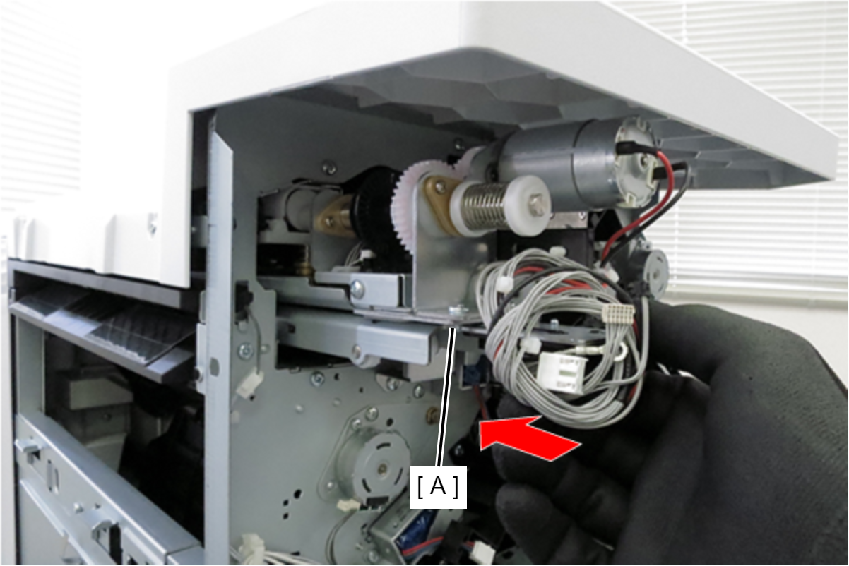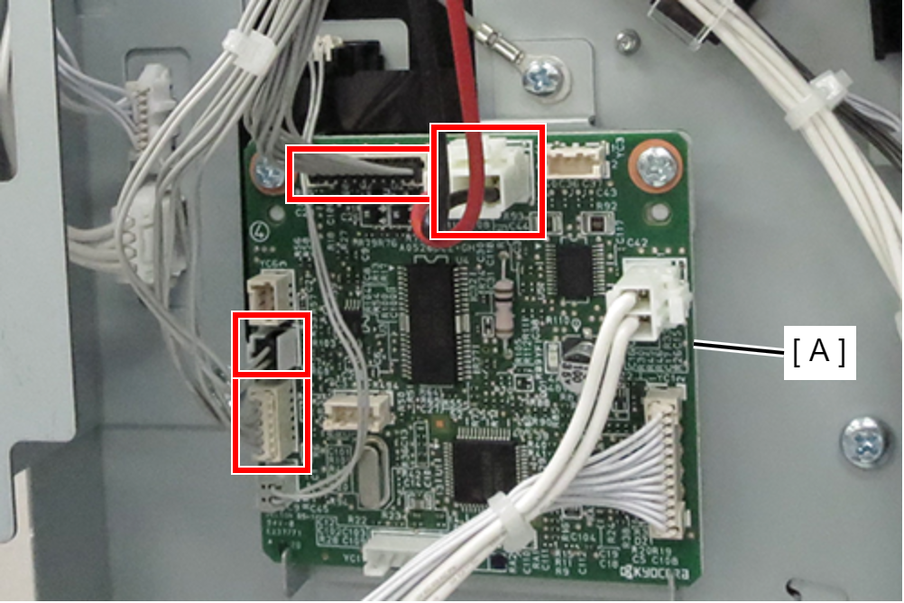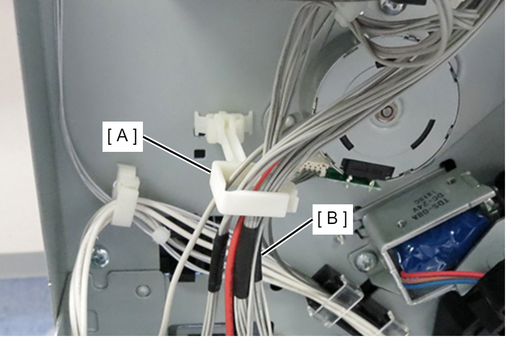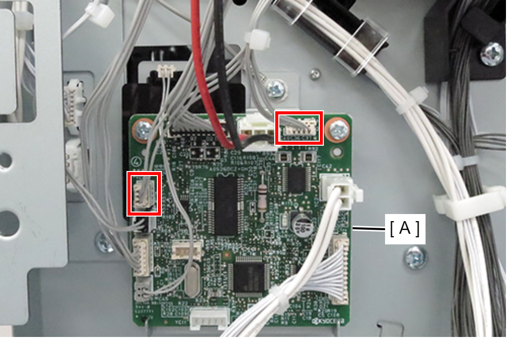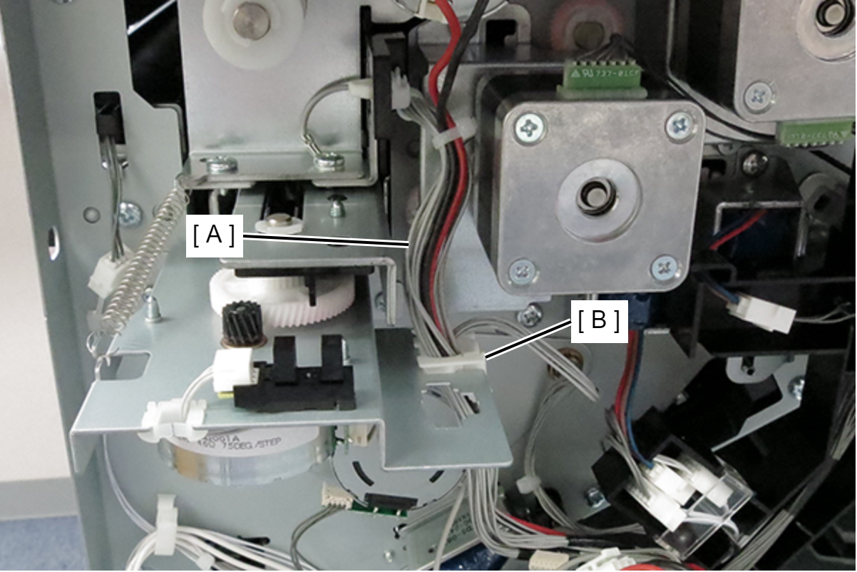 - 将电机单元的2根电缆连接到打孔板(A)上的连接器。