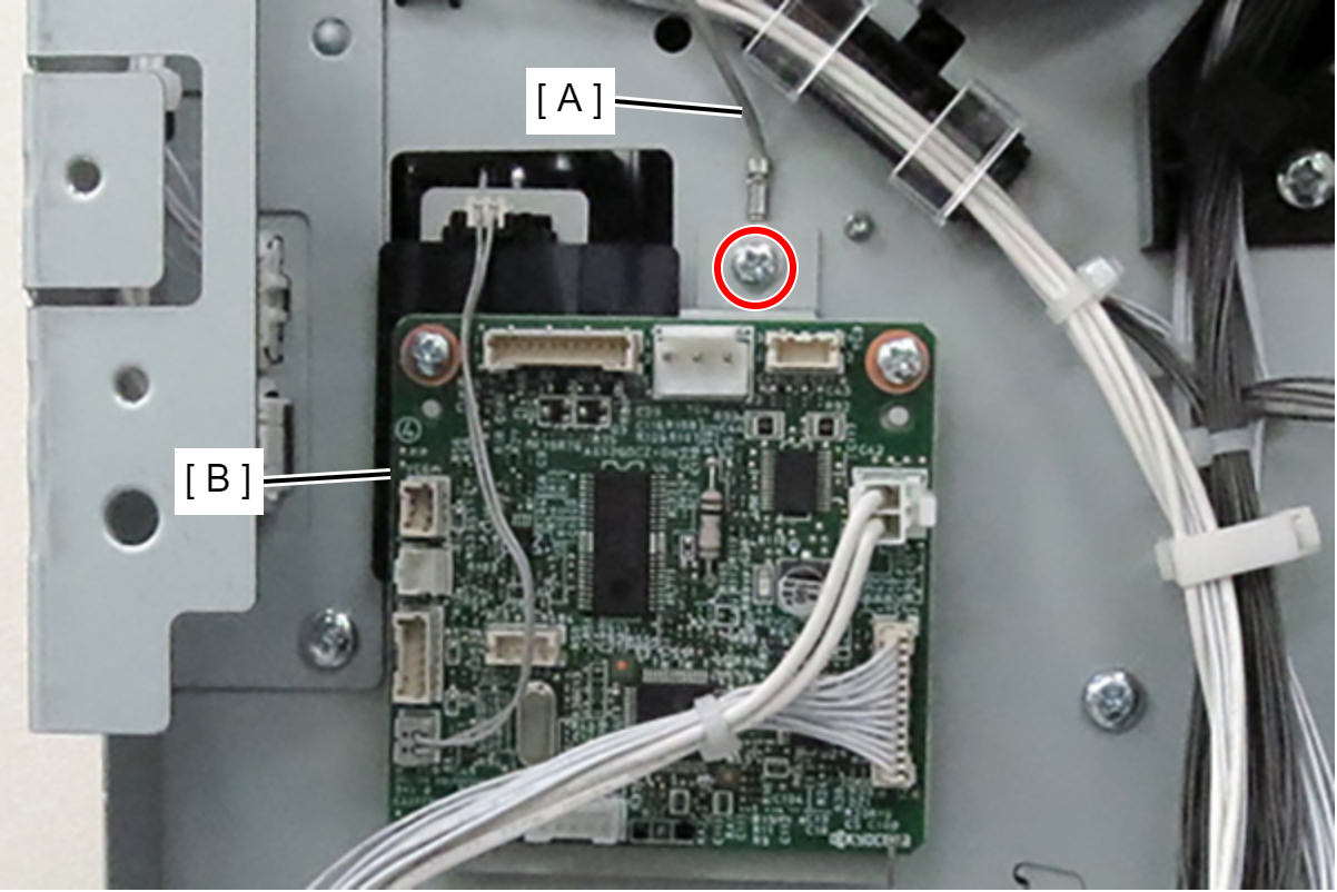 - 用1颗螺丝将地线(A)和打孔板(B)一起拧紧。