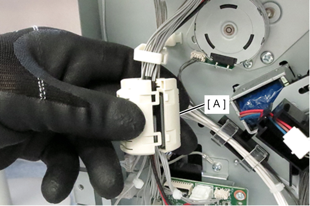 - 将磁芯(A)安装在如图所示位置。