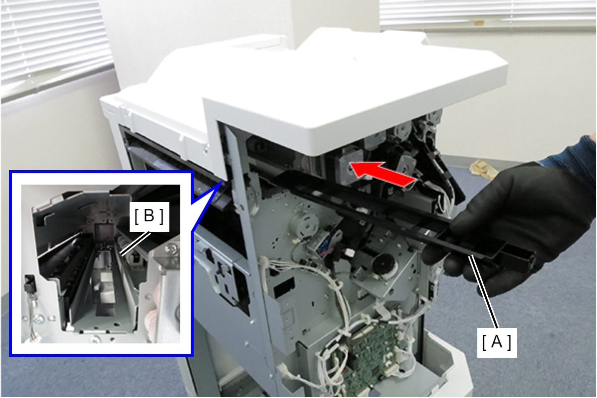 - 轻轻提起打孔单元(A)的后端,将其慢慢插入。