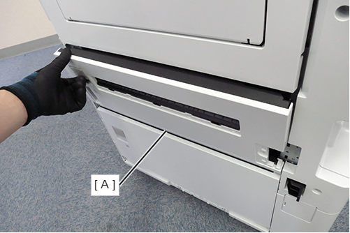 倾斜大容量进纸器90度,使左侧(A)朝上。