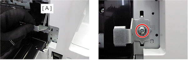 - 安装后锁金属板(A),使突起对齐标尺底部,然后用1颗螺丝固定。