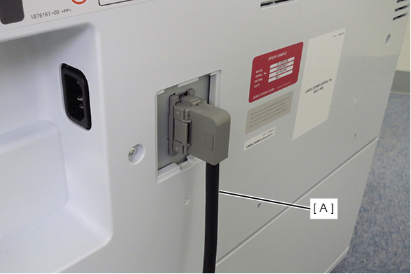 将大容量进纸器的电缆(A)连接到主机。