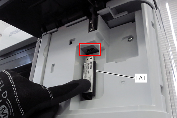 - 将无线局域网单元(A)安装到Wi-Fi单元端口。