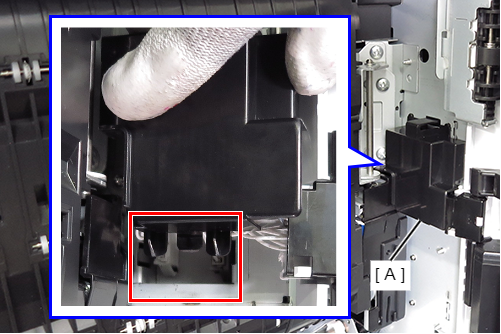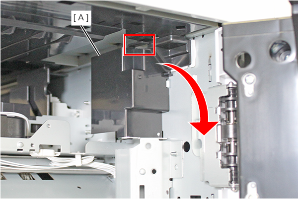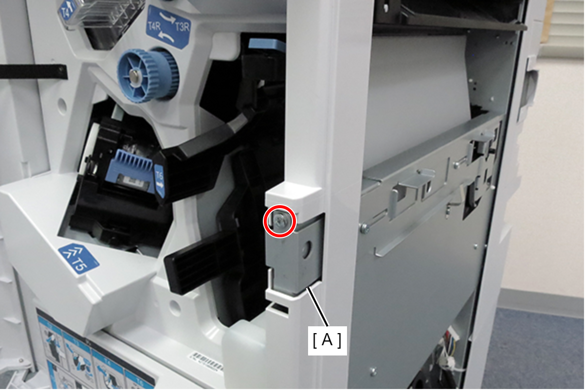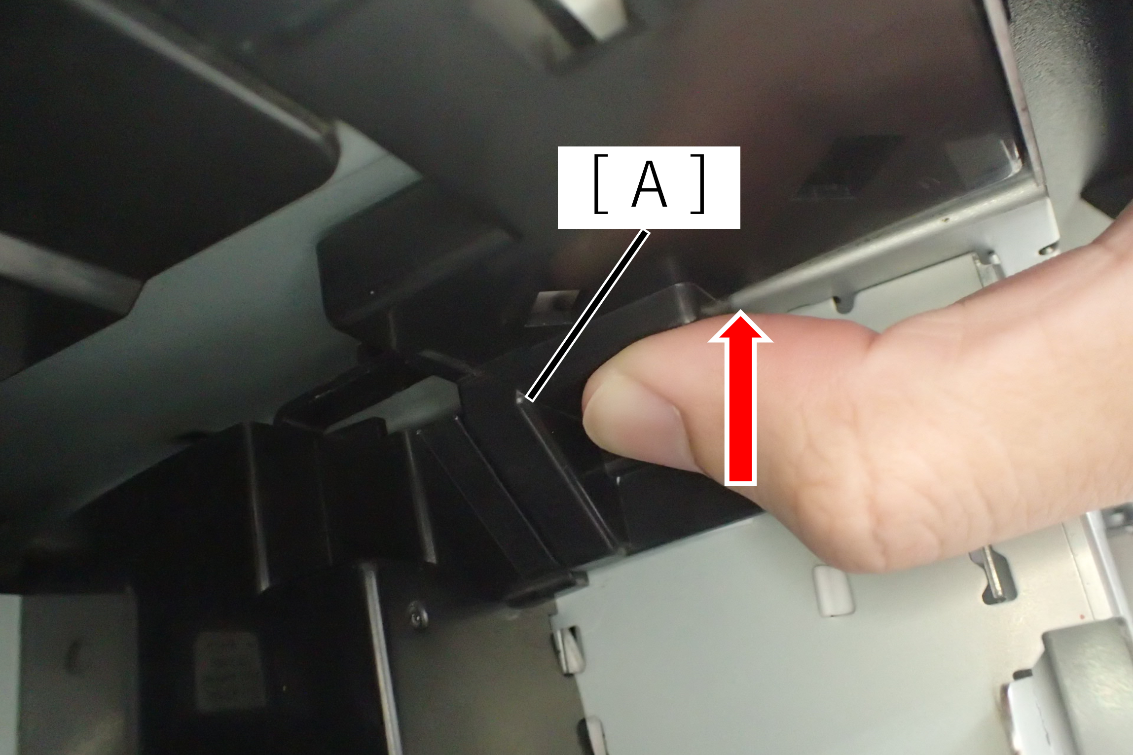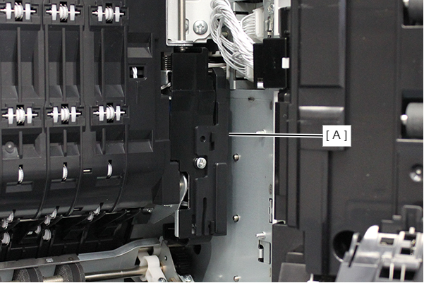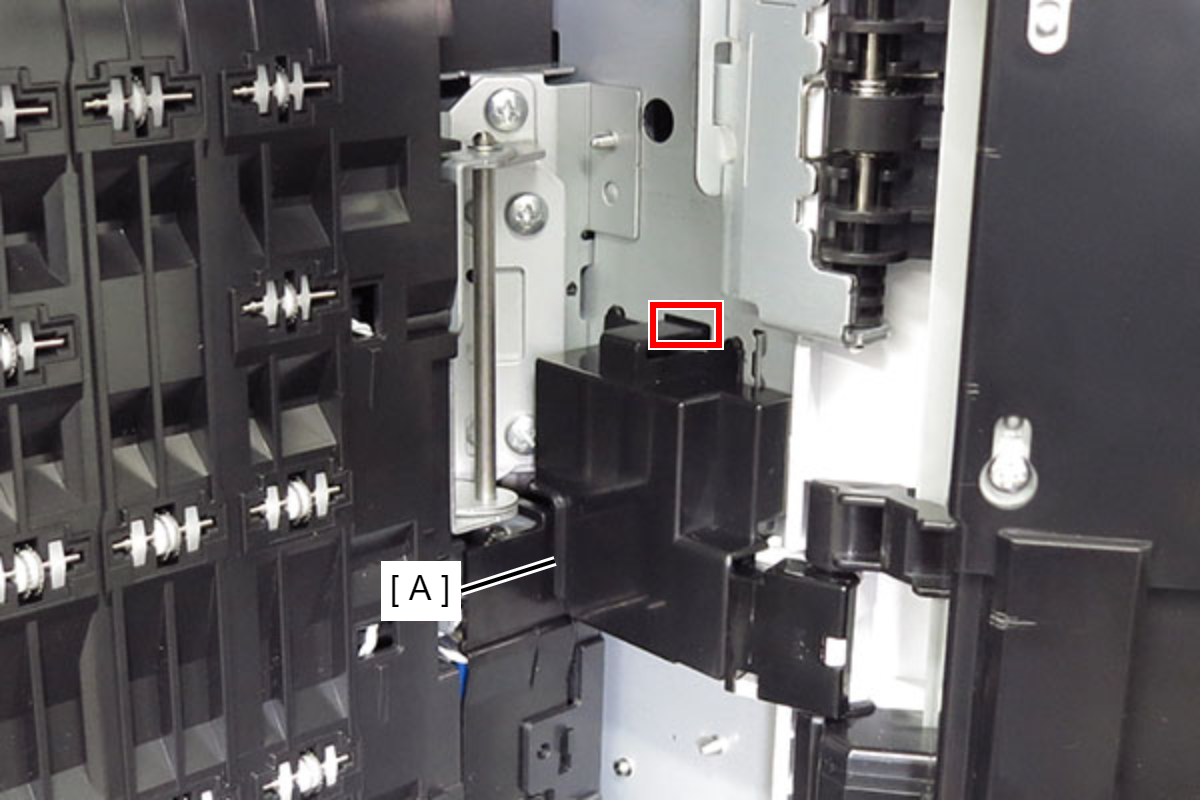 - 拆下1颗螺丝并拆下FD导纸轨(A)。