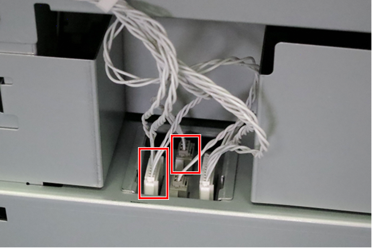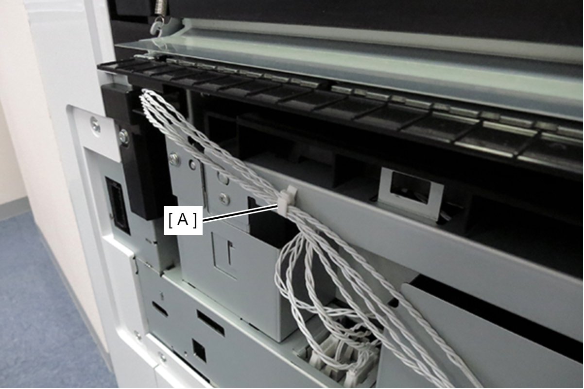 - 将2根电缆(A)连接到D3单元上的连接器,并将其放在卡钩(B)内侧。