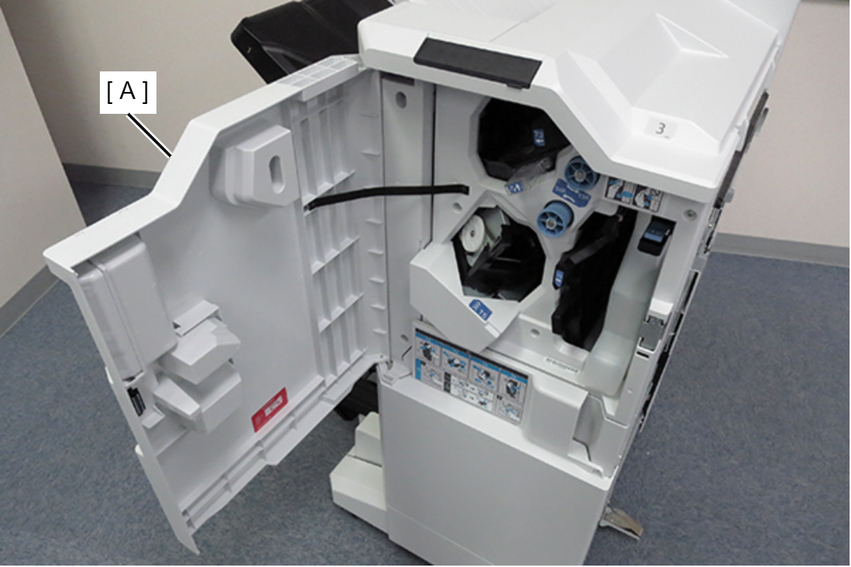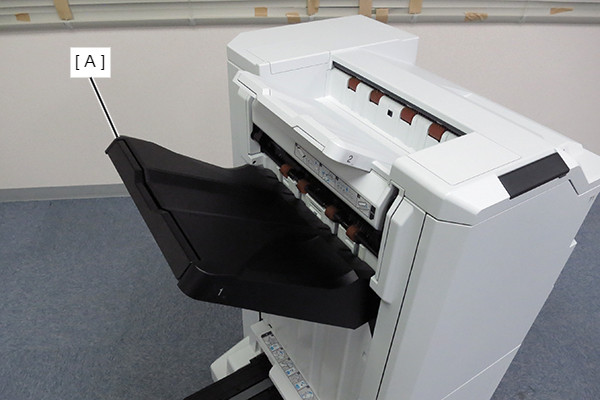 - 将装订器下部托盘(A)安装到落地式装订器。