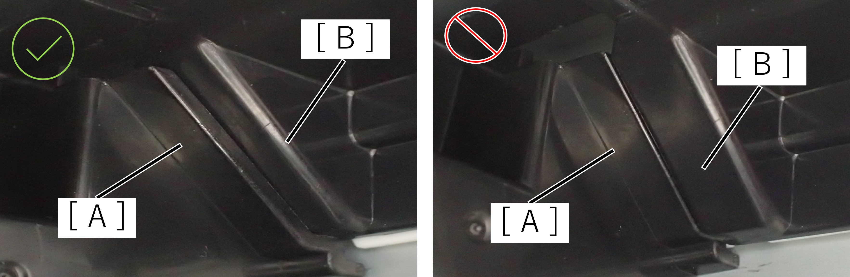 Caution / 注意・确认FB电缆盖(A)钩在FR支架(B)下方。
