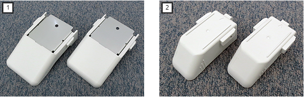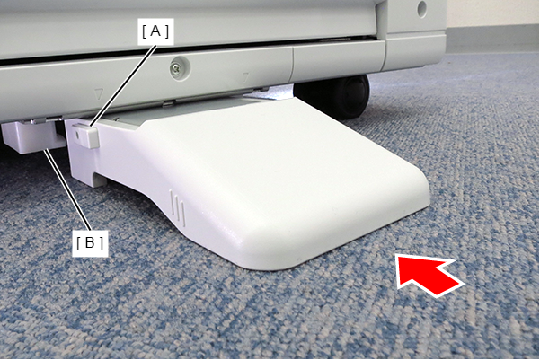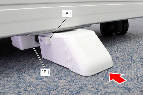 - 将 稳定器A的卡扣(A)沿着新增纸盒底部的导轨(B)推到底。