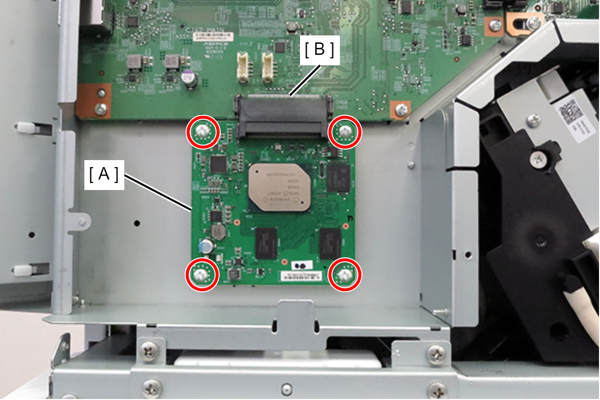 - 将OCR板(A)连接到主板上的连接器(B),然后用4颗螺丝固定。