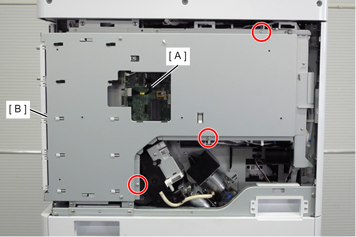 - 用3颗螺丝固定板箱上箱(B)。