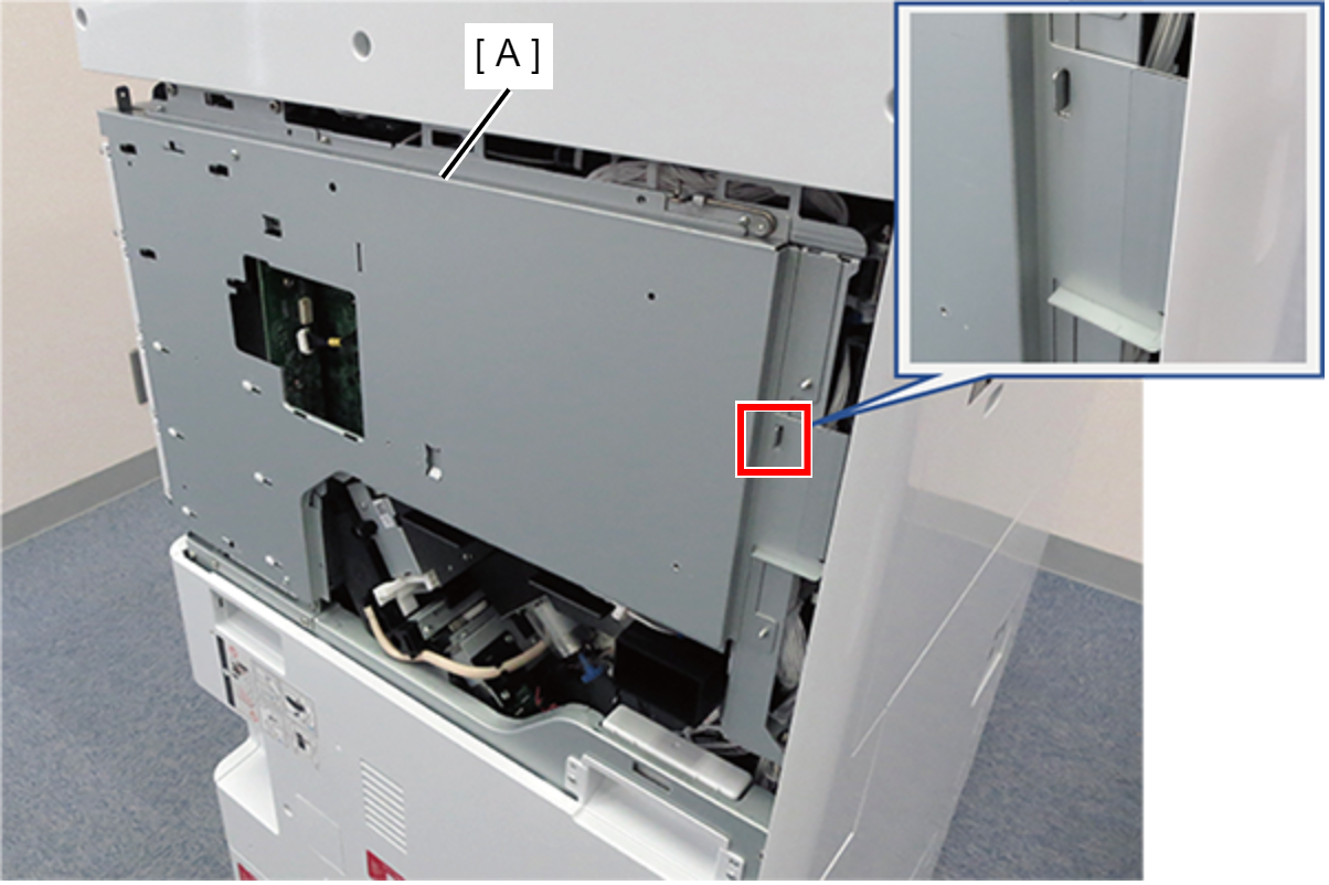 - 关闭电路板箱上箱(A),提起手柄并用卡钩锁定。