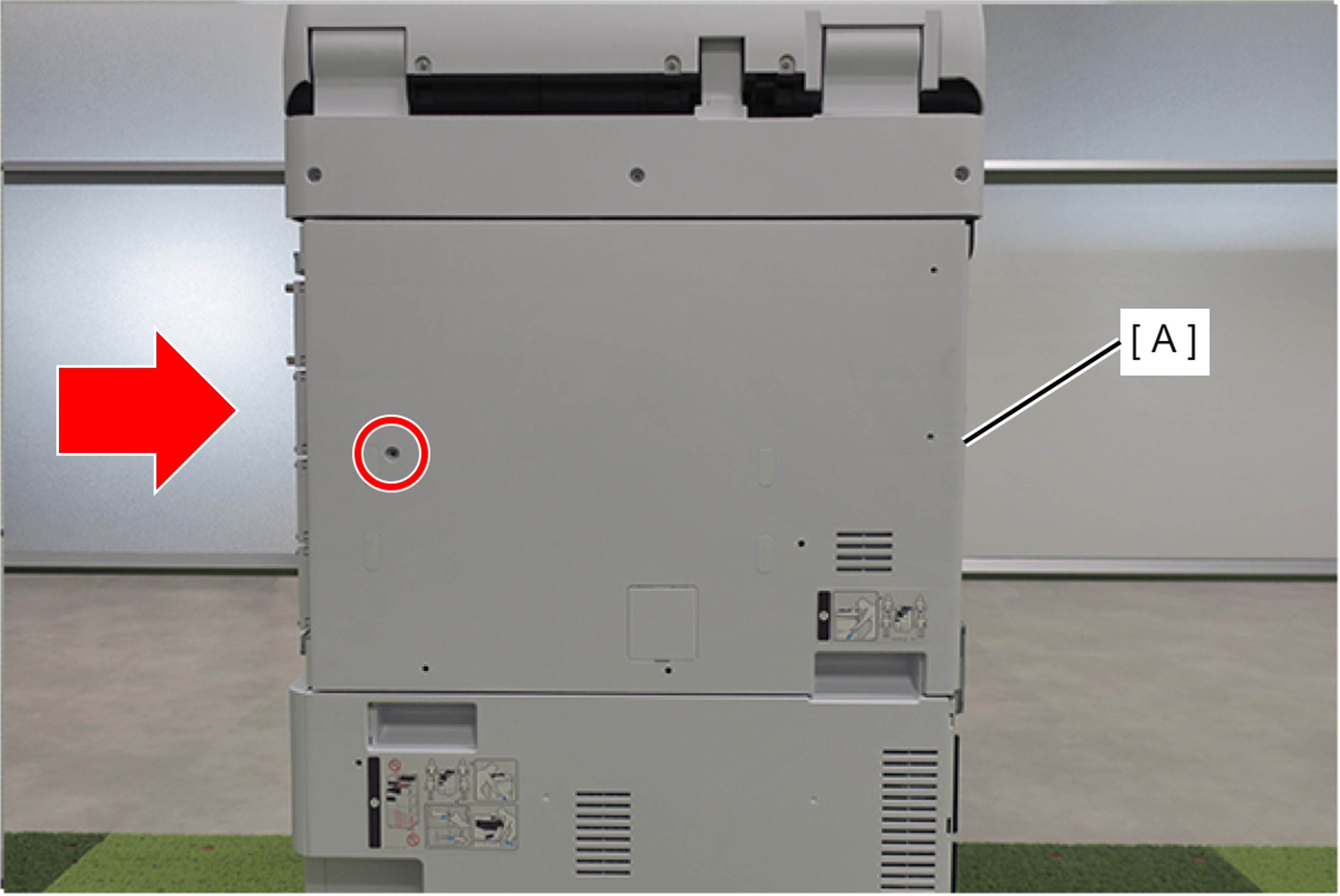 - 沿与箭头相反的方向滑动后盖(A)使其钩住,然后用1颗螺丝固定。