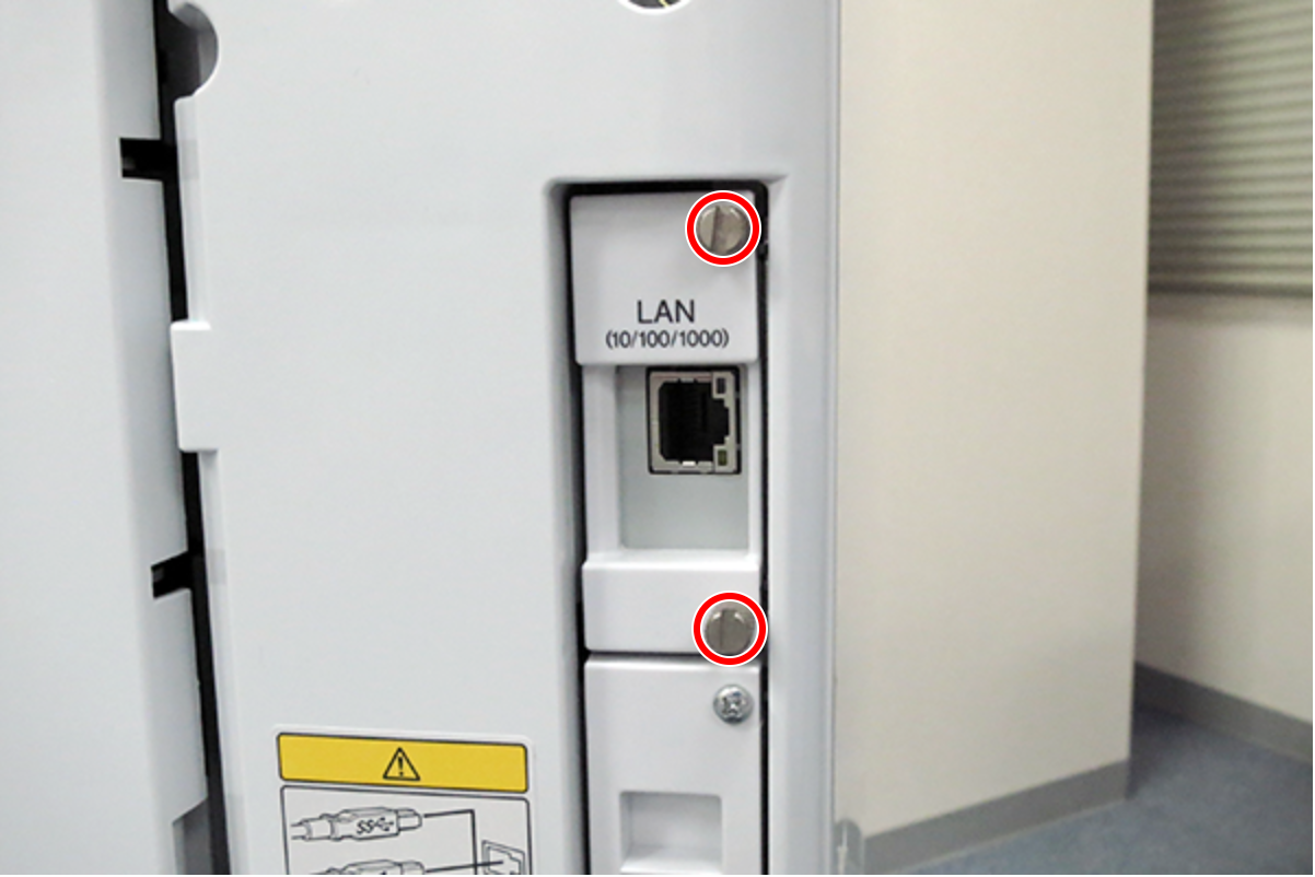- 将附加网络接口板插入LAN端口,并用2颗螺丝固定。
