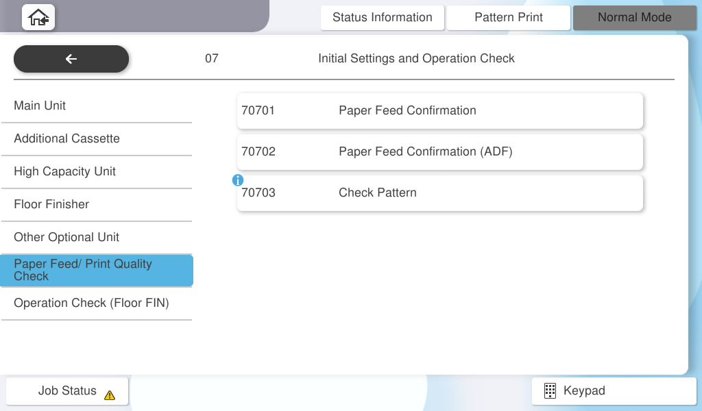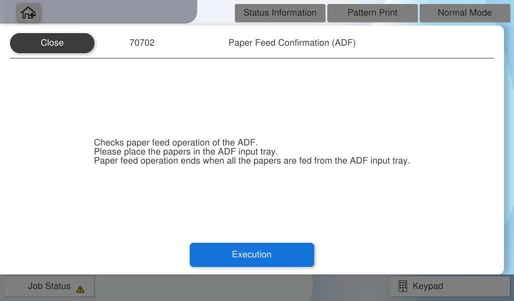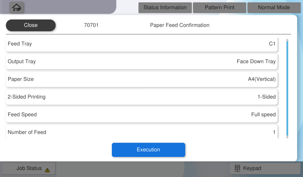 - 从以下菜单中,选择要检查进纸的设置,然后按[Execution](执行)。