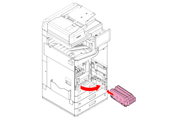执行首次充墨之前,请确保维护箱已安装。 如果在尚未从C1纸盒拆下维护箱时打开电源,可能会损坏纸盒。 |