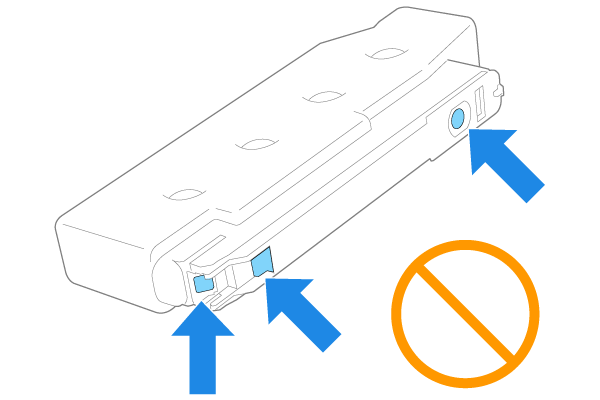 Caution / 注意请勿触摸下图所示墨盒和维护箱的IC芯片和供墨喷嘴触点,因为这可能会导致缺陷或墨水粘附。