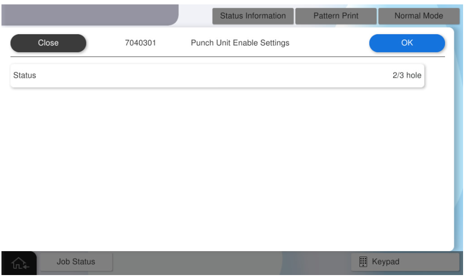 - 选择[7040301 Punch Unit Enable Settings](7040301打孔单元启用设置)。