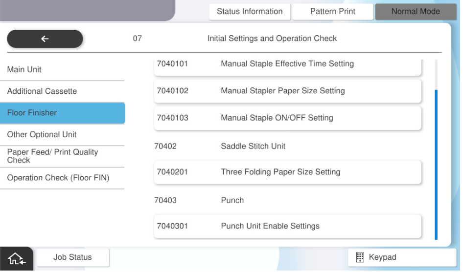 - 选择[Floor Finisher Operation Check](落地式装订器操作检查)选项卡。