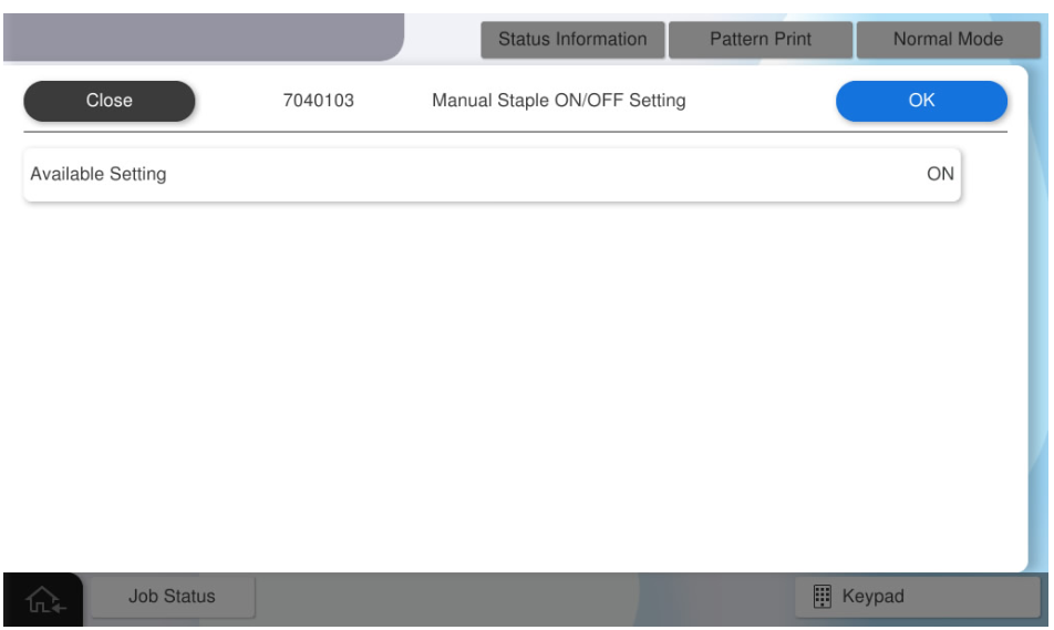- 选择[Manual Staple ON/OFF Setting](手动装订开/关设置)。