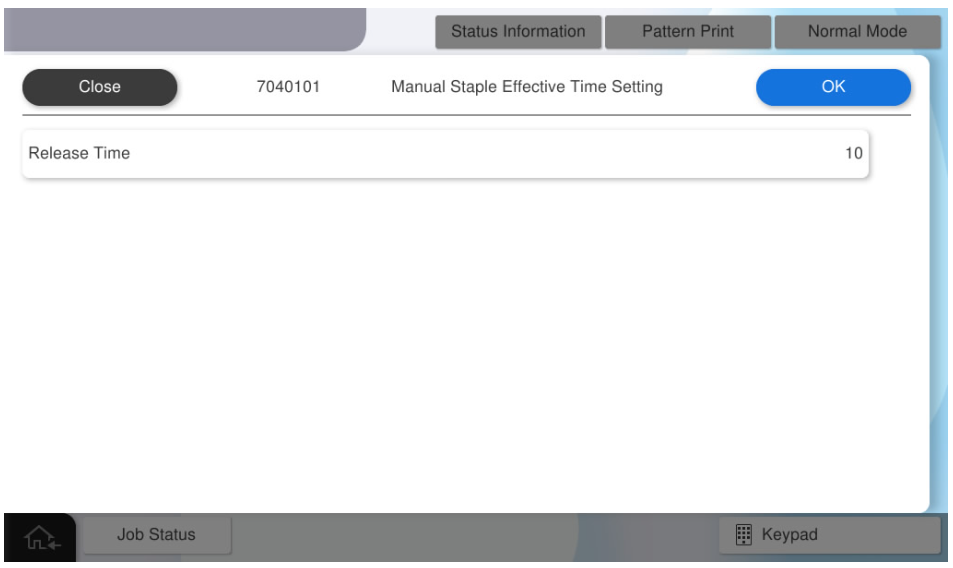 - 选择[Manual Staple Release Time Setting](手动装订释放时间设置)。