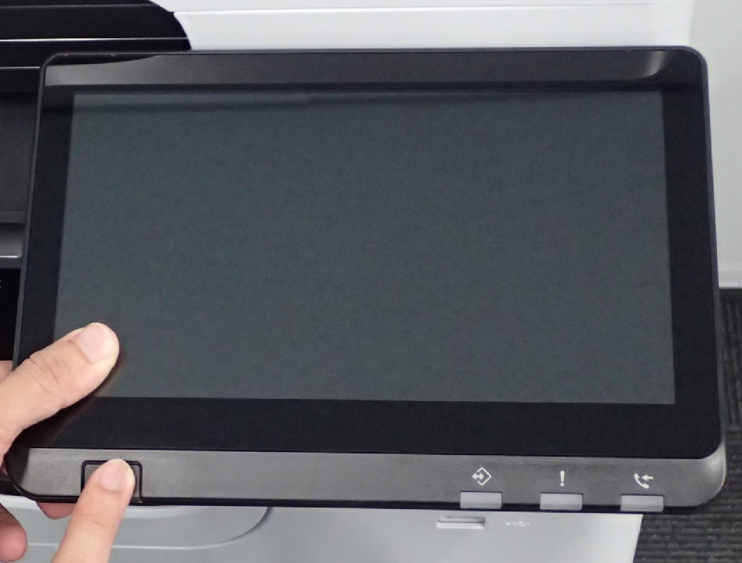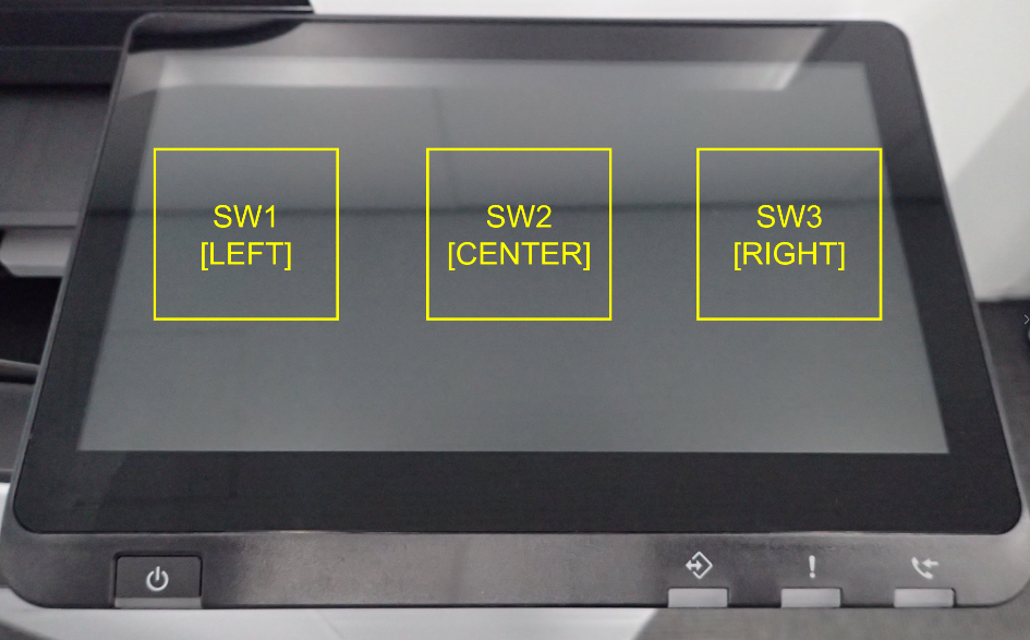 在电源关闭的状态下,按住[power button](电源按钮)的同时按操作面板的左上方,以启动ID输入屏幕。