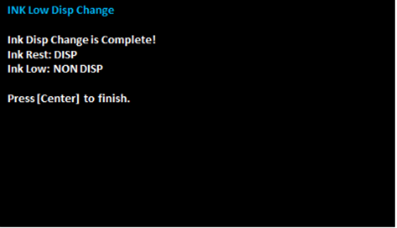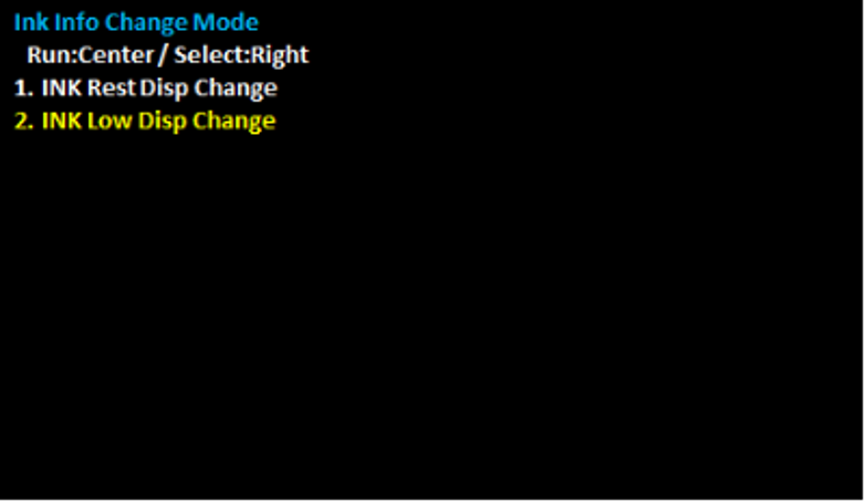 选择[INK Low Disp Change](墨水量低提示更改)并选择[Center](运行)。