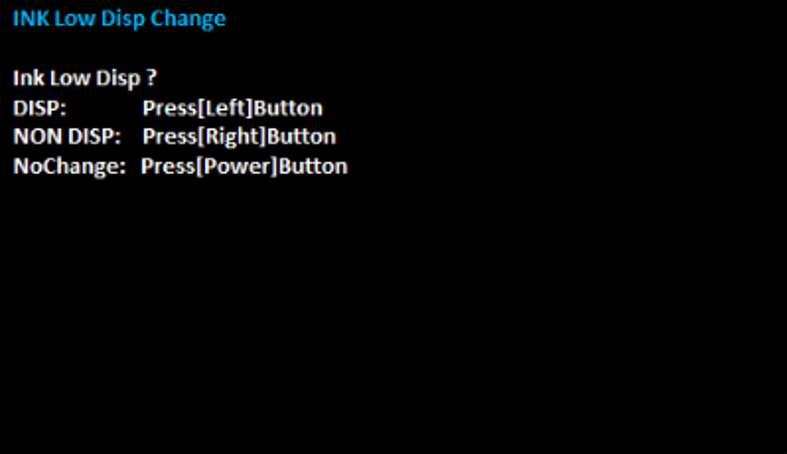 设置值 概述 DISP 显示墨水液位屏幕 NON DISP 不显示墨水液位屏幕 NoChange 不更改设置