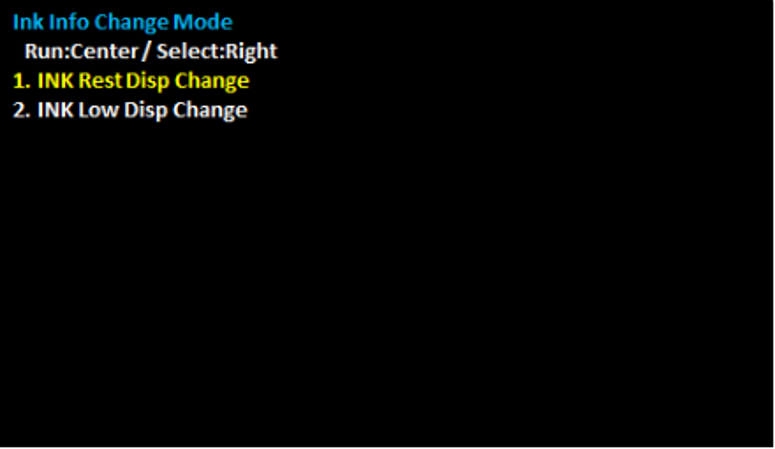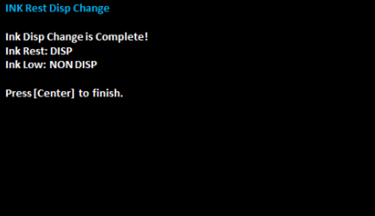 - 选择[INK Rest Disp Change](墨水重置提示更改)并选择[Center](中心)。
