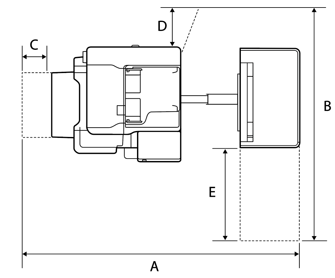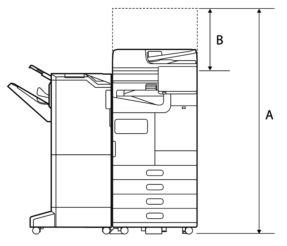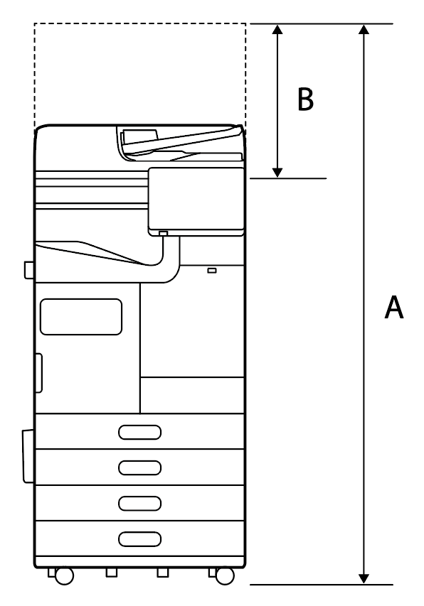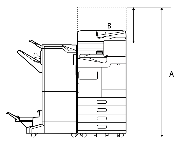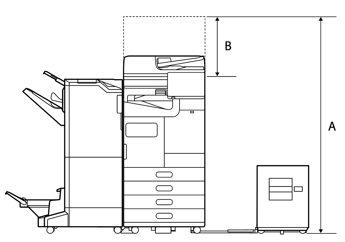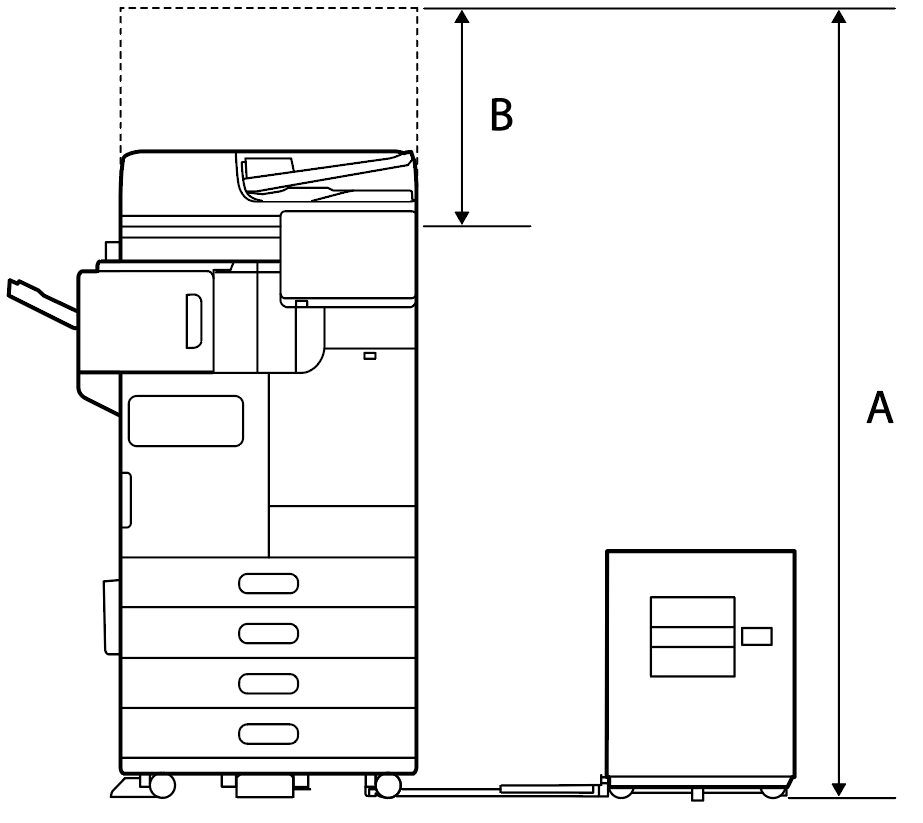 大容量进纸器和主机之间的水平规格