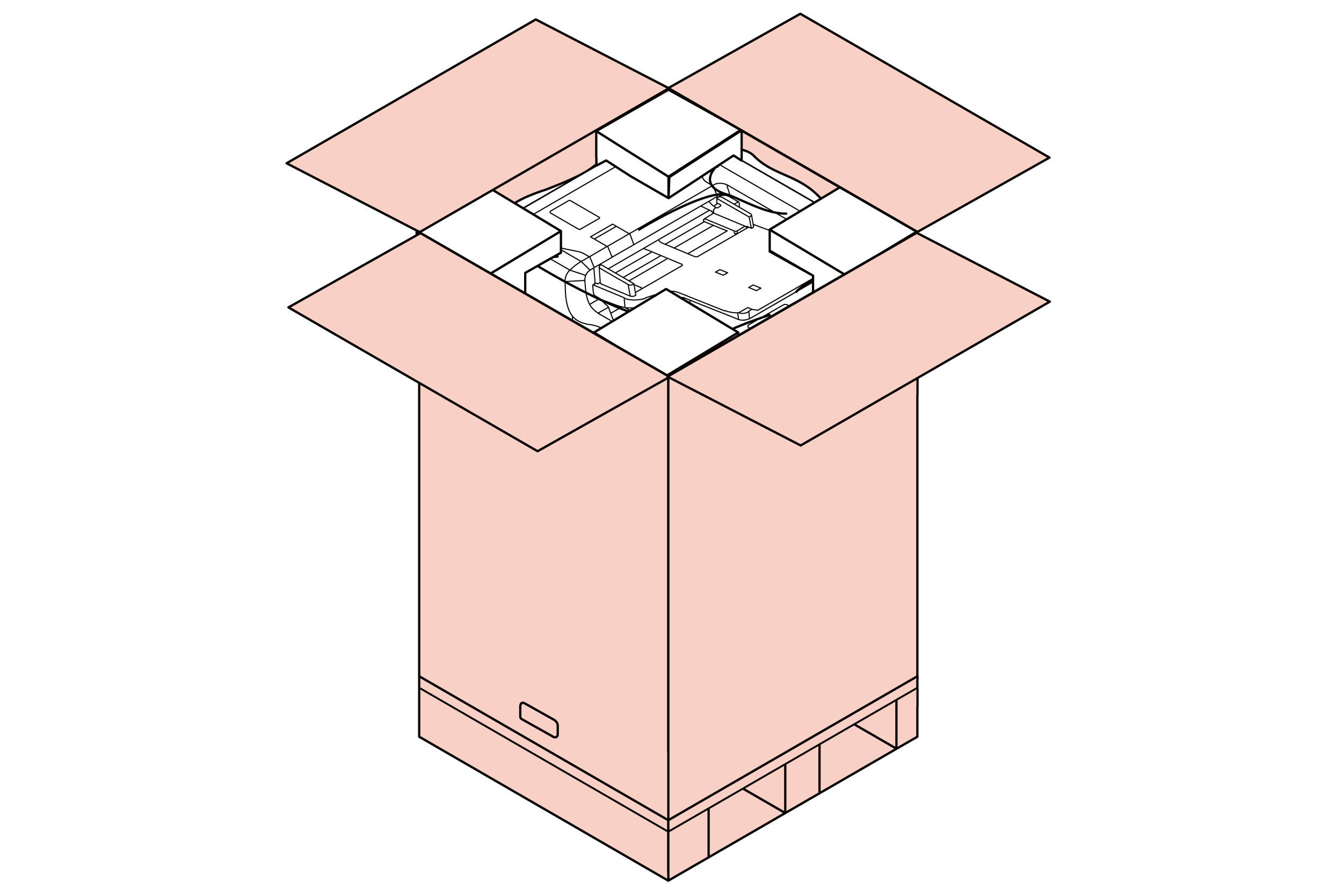 - 保留右门的运输保护件,因为再次运输时需要。建议将其存放在手动托盘中或纸盒的凹处(A)。